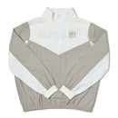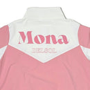 Blouson, half zip, pullover type blouson, color scheme design, elastic hem design, logo print, silicone patch