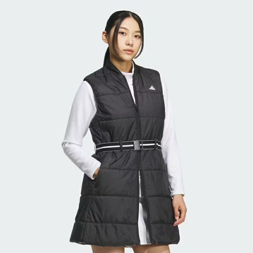 Vest longVest One piece long battingVest Filled dress, water repellent, windproof, slightly brushed lining, belt included, logo print, golf wear