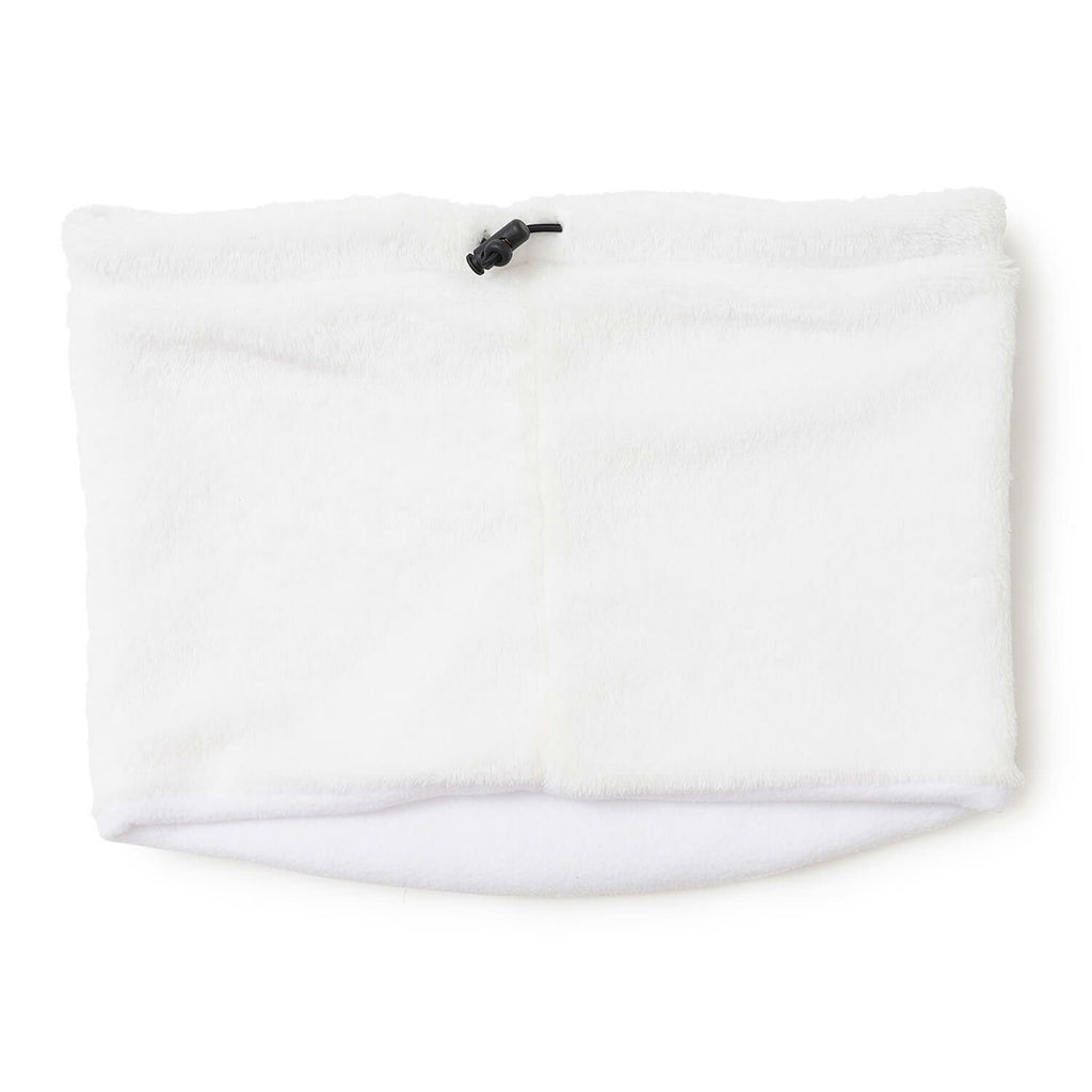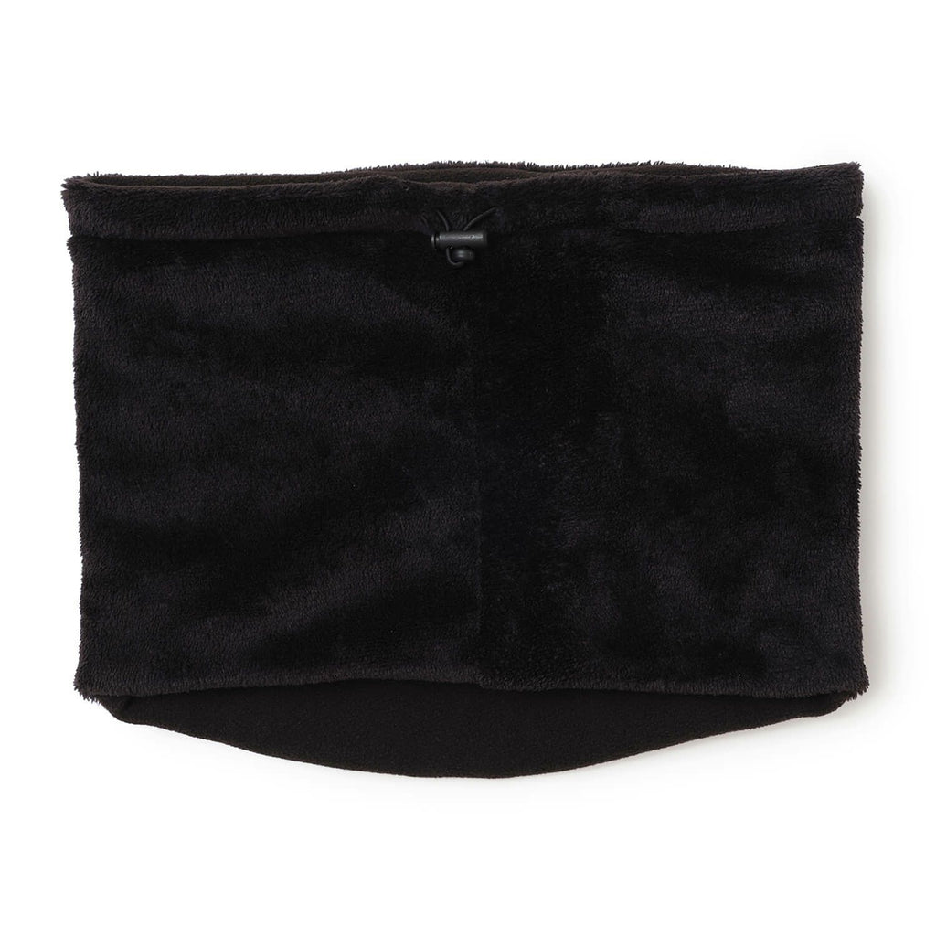 Neck warmer with fleece lining and short pile outer material that feels nice to the touch.
