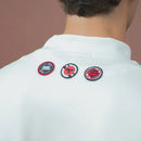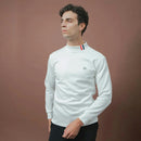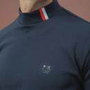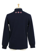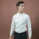 High neck shirt, long sleeve, mock neck shirt, stretch, medium thick material, tricolor tape, back logo patch, golf wear