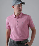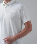 Polo shirt, short sleeve, cable pattern, rope pattern, rope pattern, logo embroidery, metal plate, available from M to 3L, golf wear