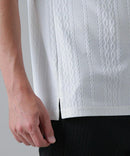 A rare Links machine A rope patterned Links jacquard short-sleeved shirt with a 16G low gauge that expresses a three-dimensional jacquard.