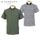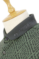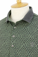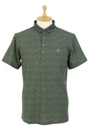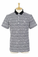 Polo shirt, short sleeve, stretch, lightweight, made with thread from Hokuriku region, diamond pattern print, all-over pattern, logo patch, logo plate, available from M to 3L, golf wear