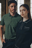 Polo shirt, short sleeve, stretch, lightweight, made with thread from Hokuriku region, diamond print, all-over pattern, logo patch, logo plate