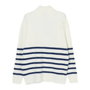 Sweater, half zip knit, can also be used as a high neck, striped pattern, logo embroidery, hand washable, soft mallet knit TOPS