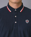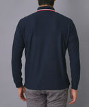 [Long-sleeved polo shirt with classic traditional style ribbed collar]