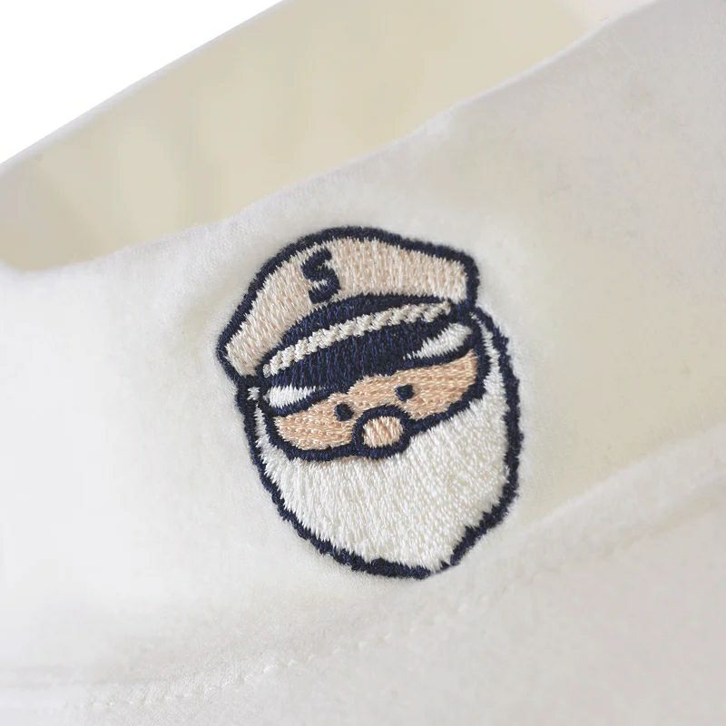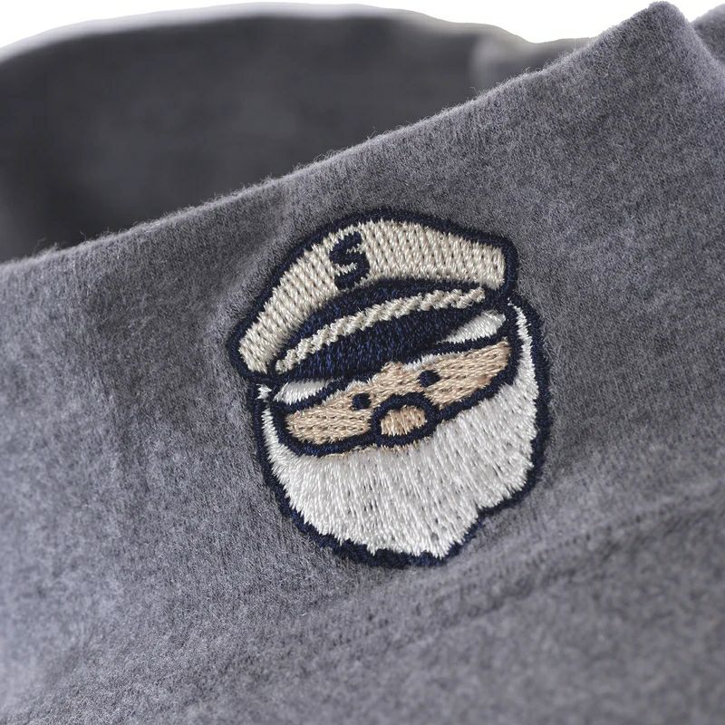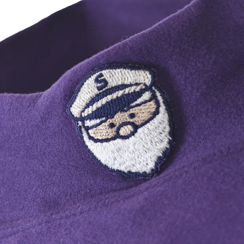 A high neck T-shirt that is useful from early autumn to spring. The embroidery is a remake of a popular motif. The slim length and just the right size make it easy to wear as a single layer or as an inner layer. Made of bare top material using special rayon blend yarn, the surface is brushed for a smooth and warm touch. It has excellent moisture absorption and heat generation properties, anti-pilling properties, stability that does not lose its shape even after washing, and easy care. A remade captain motif is embroidered on the collar, making it suitable for layered styles. The cuffs are embroidered with a logo in a similar color, making this a soft, stretchy and warm piece.