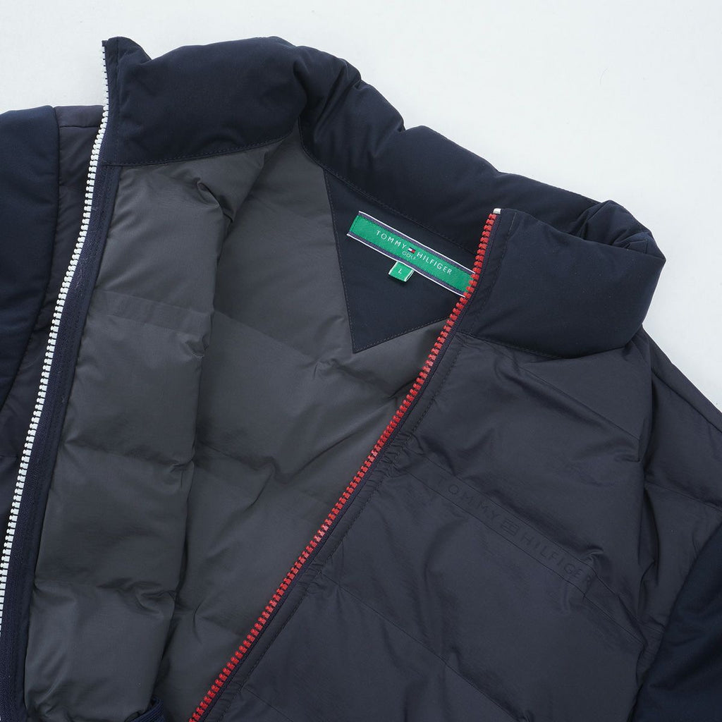 A padded jacket that uses a special knotted weave to express the TOMMY HILFIGER logo.