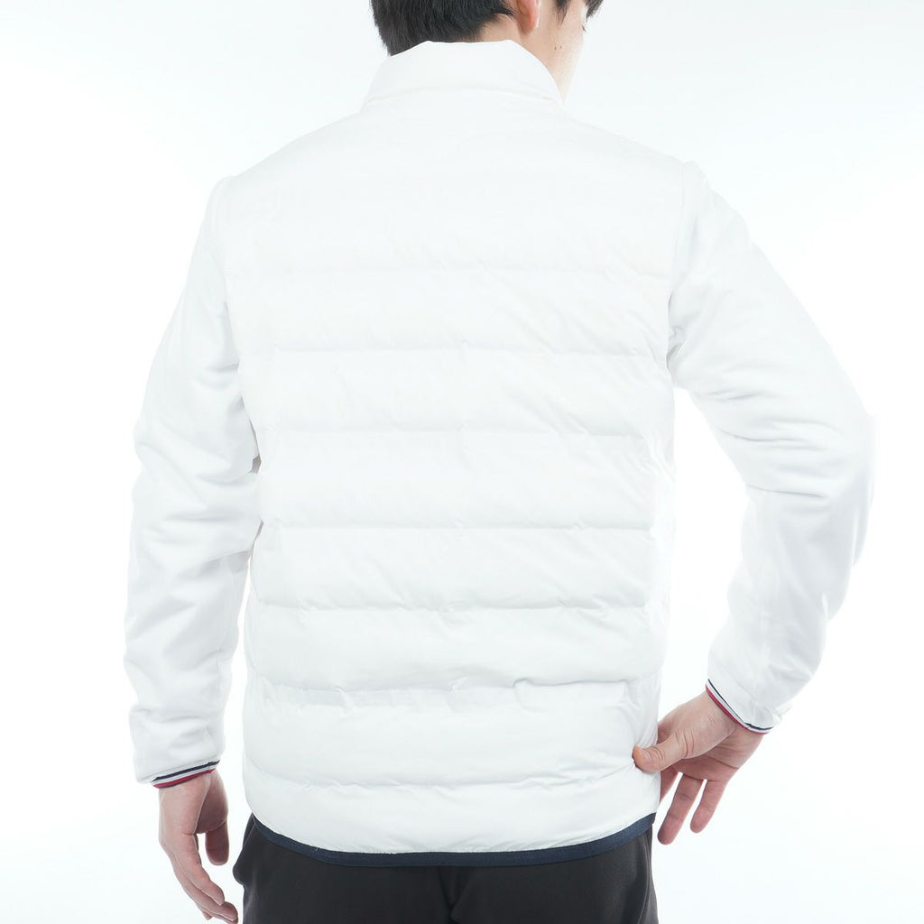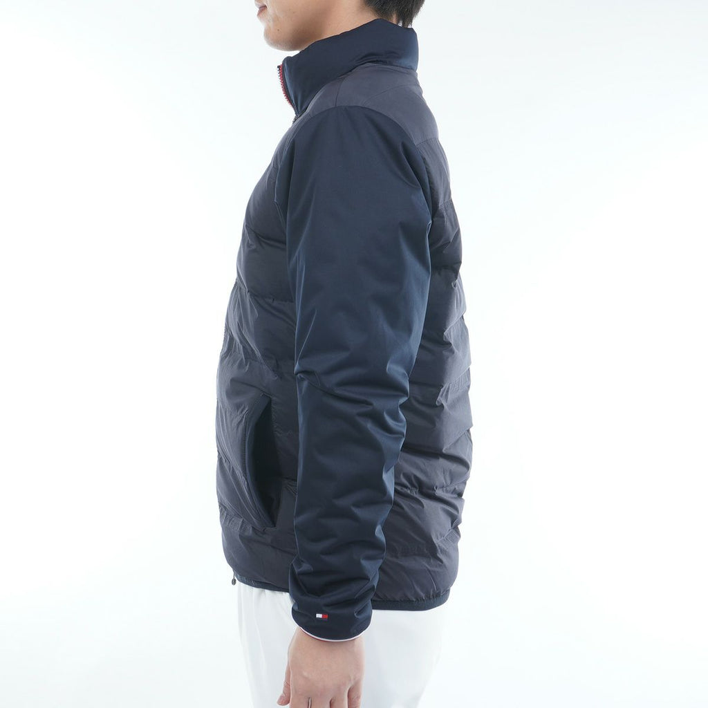 Blouson, padded jacket, body part padded, heat retention, windproof, stretch, sleeves made of different materials, stitched quilt with logo, golf wear
