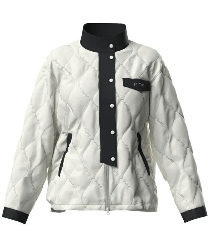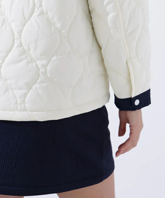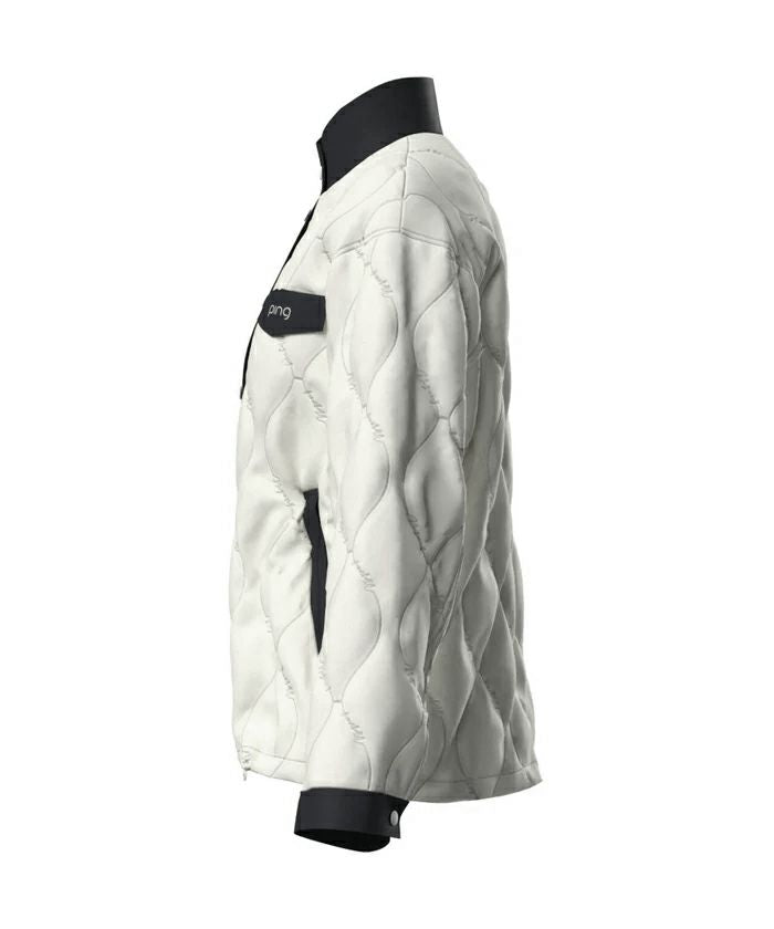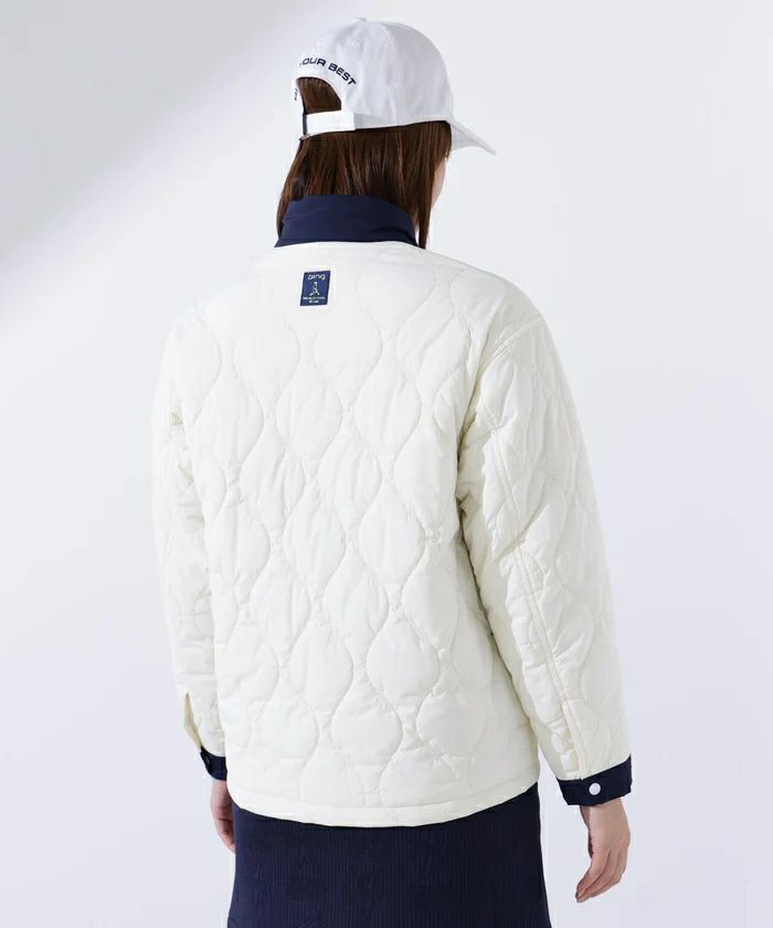 Blouson stand collar, padded, water repellent, thermal, windproof, stretch taffeta material, gourd quilt design, chest pocket, logo embroidery, golf wear