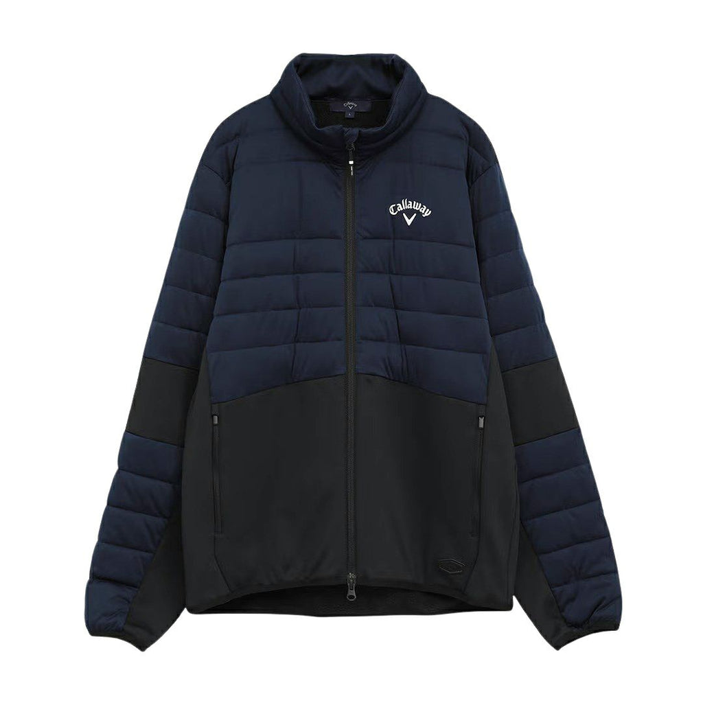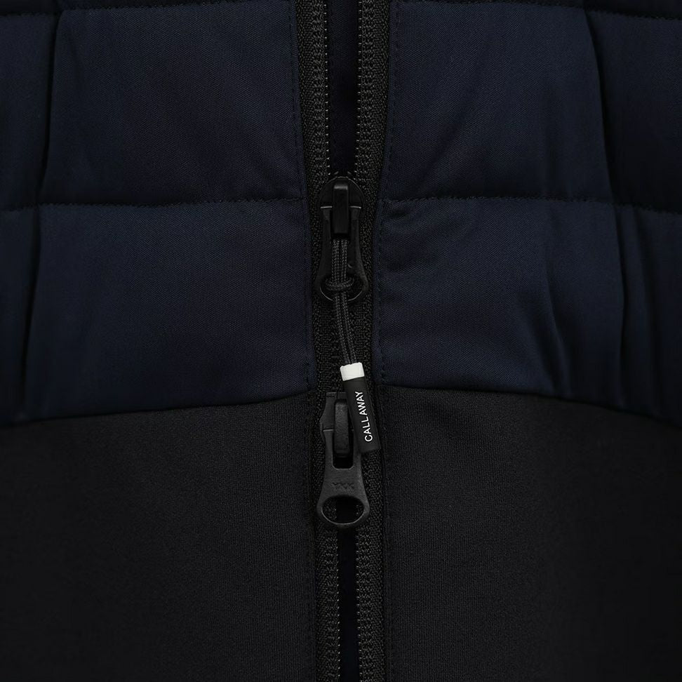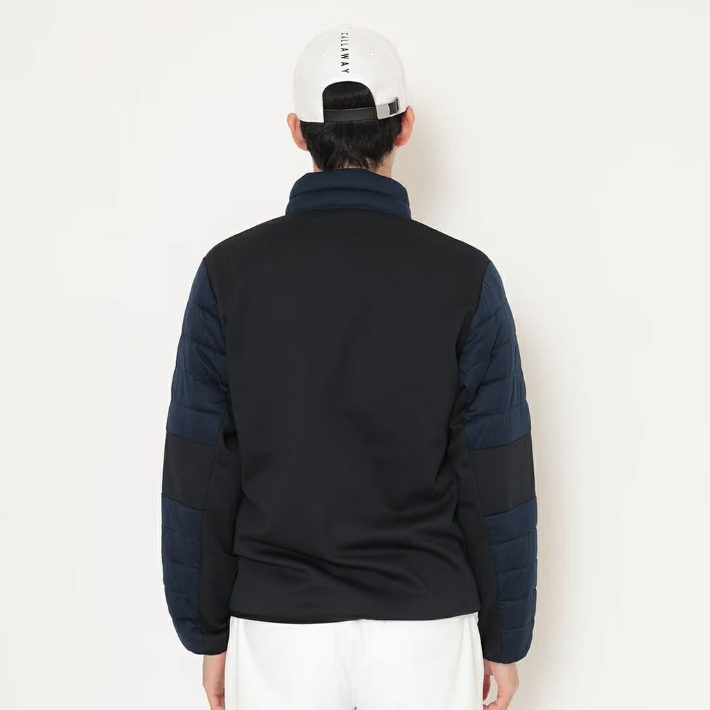 Blouson, light blouson, hybrid midler, stretch, partially padded, different material switching, partially brushed lining, heat retention, cold protection, water repellent, logo patch, available from M to 3L, golf wear