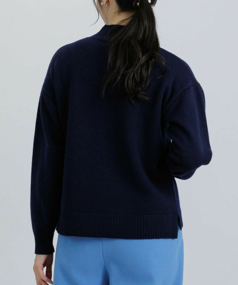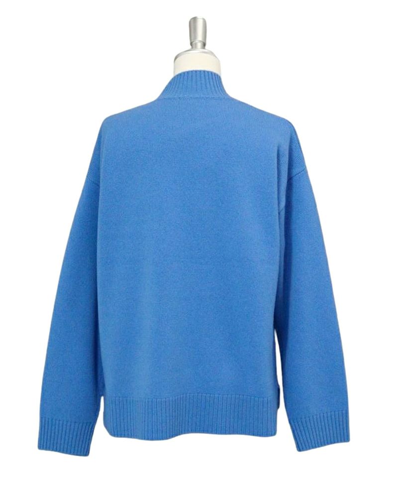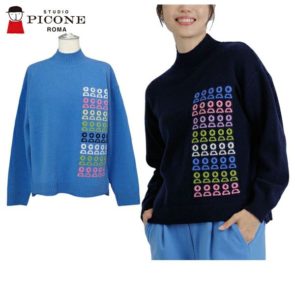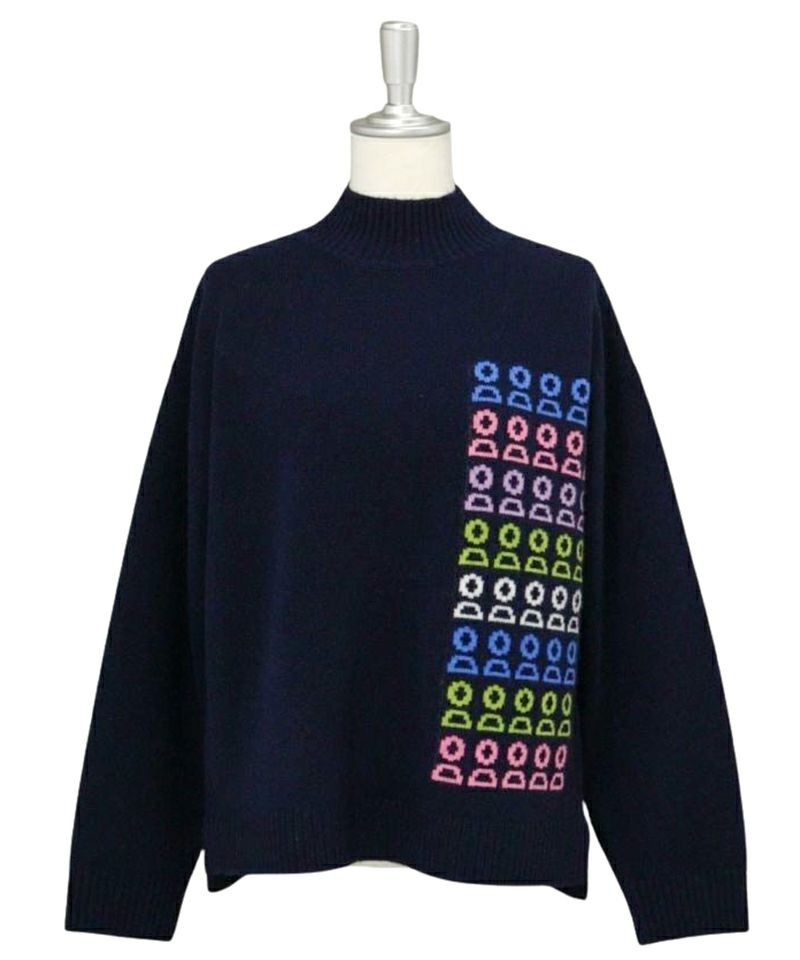 Sweater High Neck Knit Pullover 100% Wool High Quality Drop Shoulder Design Hem Side Slit Colorful Pico Jacquard