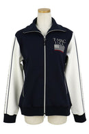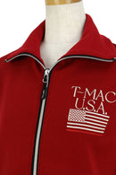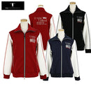 Blouson, track jacket, stand neck, stretch, sleeve color scheme design, back embroidery design, star and stripe motif, golf wear
