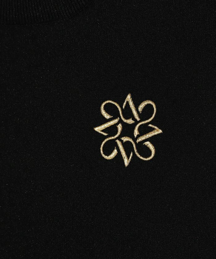 A 14 jersey x ribbed crew neck knit pullover with gold thread on the chest and neck line for an elegant look.