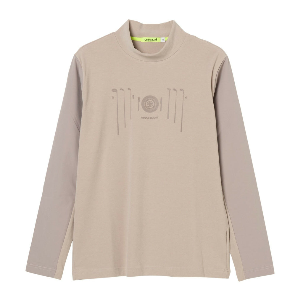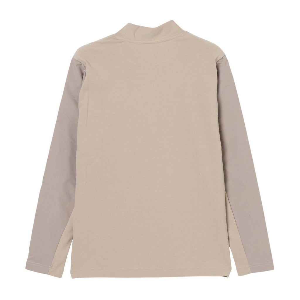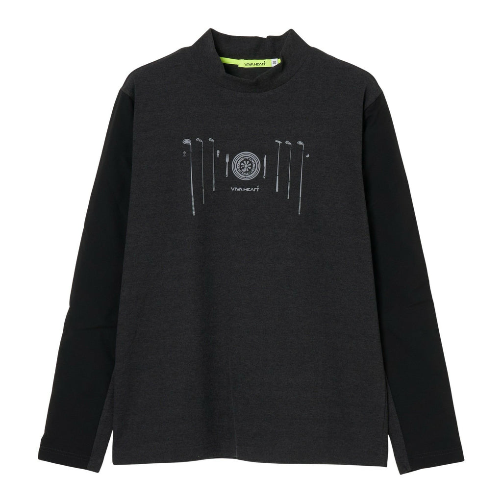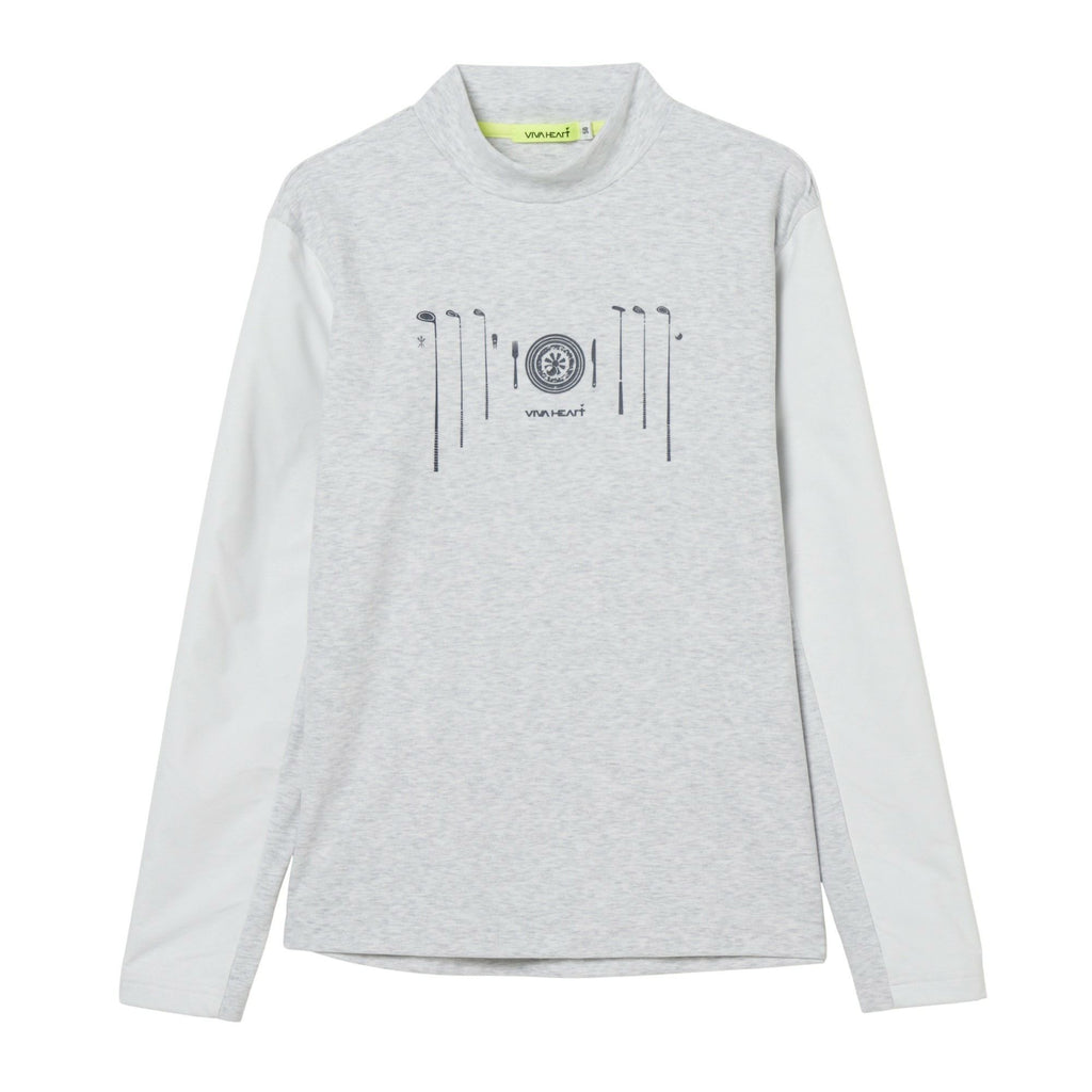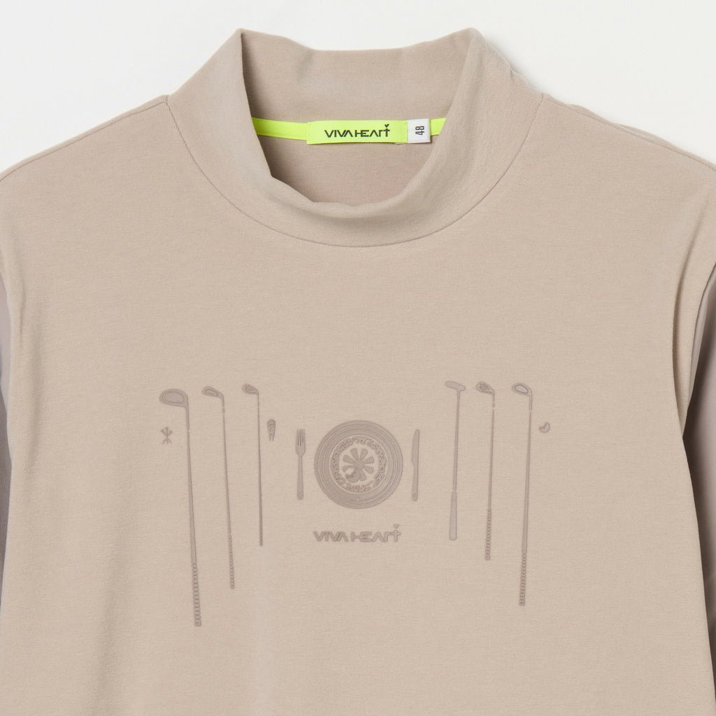 High neck shirt, long sleeve, mock neck shirt, stretch brushed material, taffeta sleeves, double sleeves of different materials, French cuisine x golf motif, graphic print, golf wear