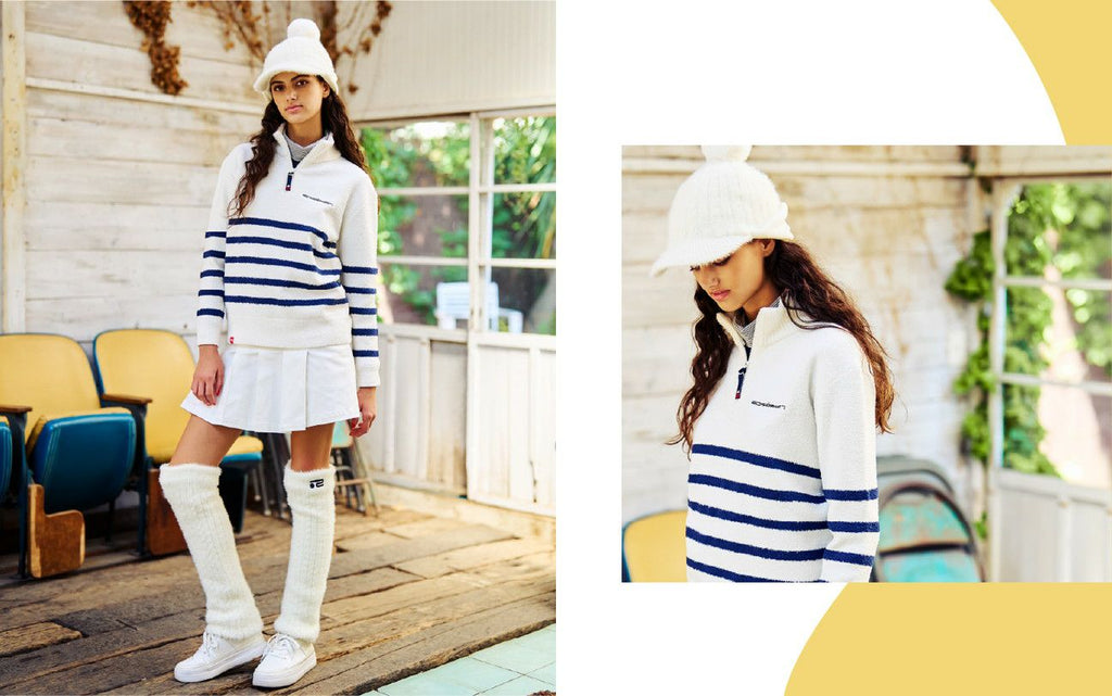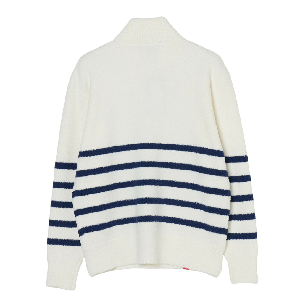 Sweater Half-zip knit Can also be used as a high neck Striped pattern With logo embroidery Fluffy knit TOPS