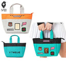 Cart bag, cart pouch, round bag, tote bag, polyester canvas, color scheme, patch design, metal logo plate, WAP CART BAG