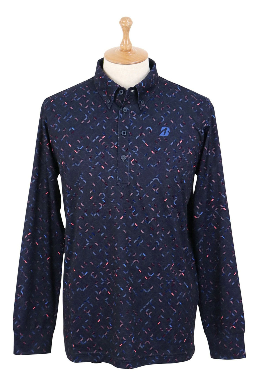 Polo shirt, long sleeve, button-down polo shirt, stretch, sweat-absorbing, quick-drying, windproof, digital print, all-over pattern, golf wear