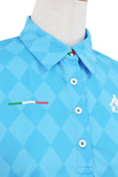 Polo shirt, short sleeve, French sleeve, stretch, UV cut, diamond pattern, argyle pattern, logo print