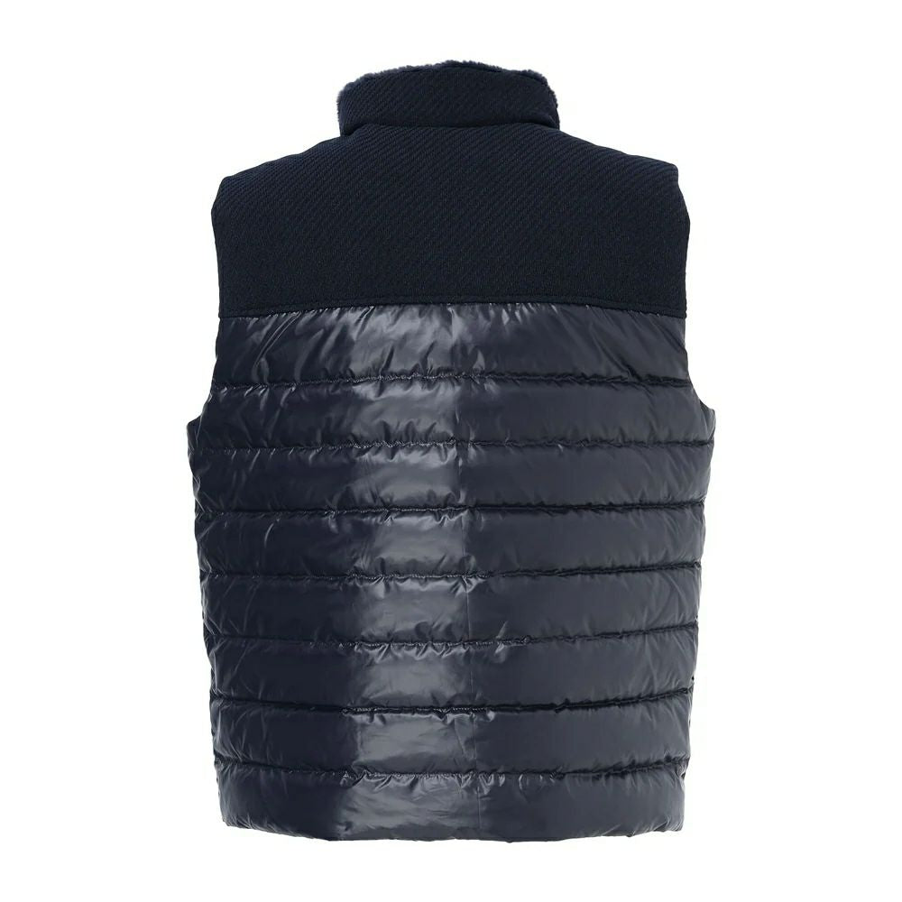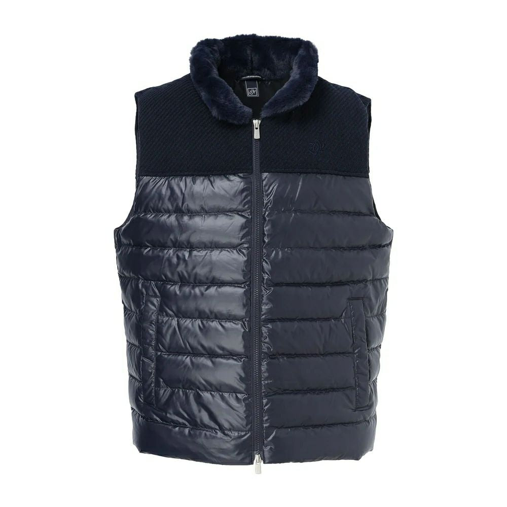 Vest downVest Taffeta material, water repellent, heat retention, cold protection, windproof, yoke part with different materials, fake fur material inside collar, logo embroidery, golf wear