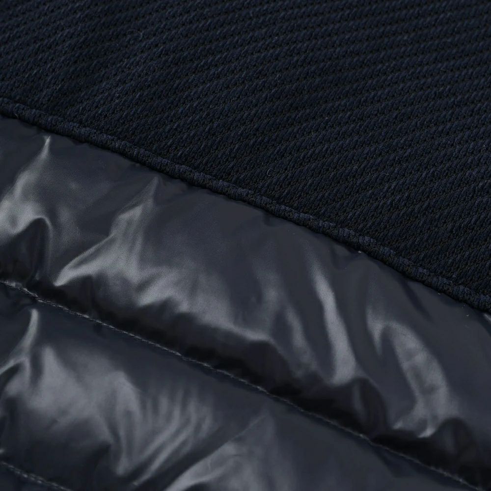Down made from high-density taffeta material with water-repellent finishVest . The yoke part is made of Calze material, adding a sporty yet elegant accent. It's light and comfortable to wear, but the heat retention that only down can provide will keep you comfortable.
