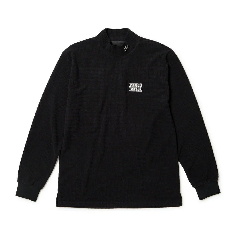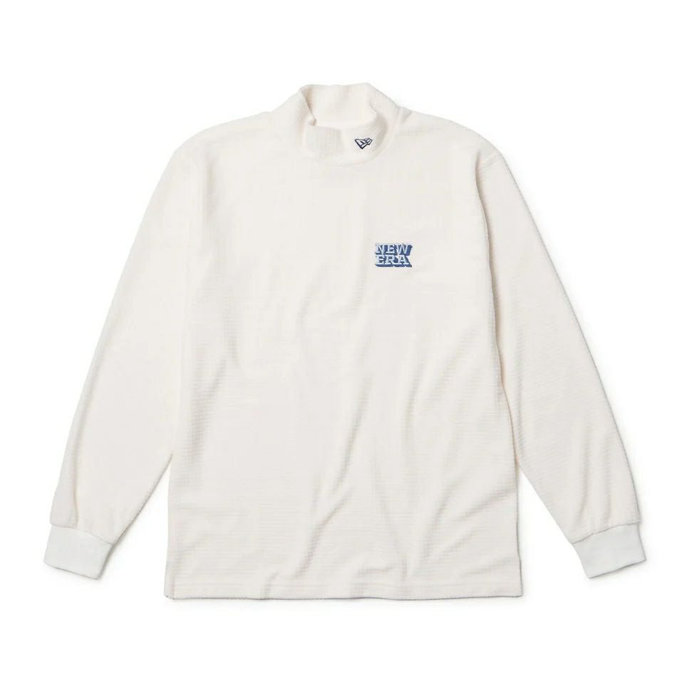 High neck shirt, long sleeves, brushed material, grid design fleece, mock neck shirt, warm feel, HIGH NECK FLEECE TEE logo embroidery