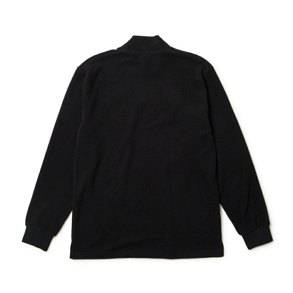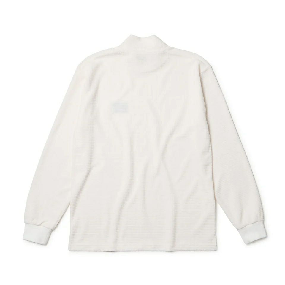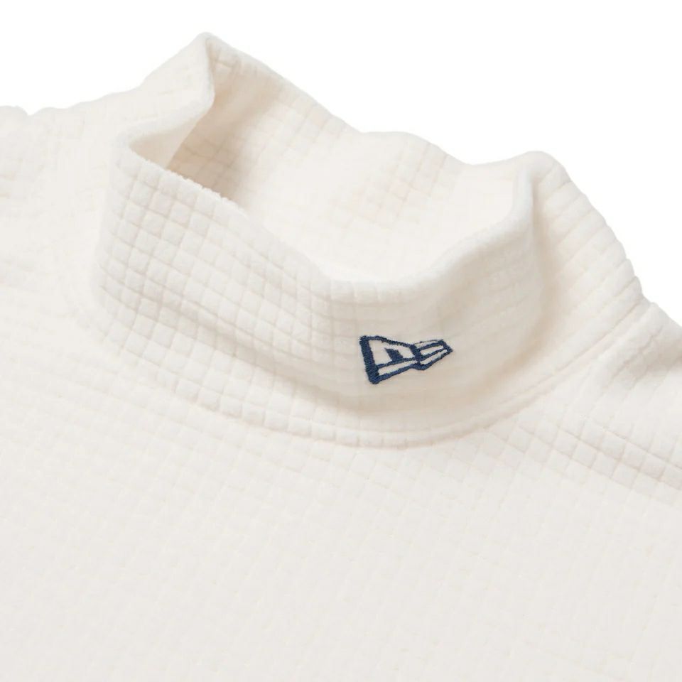 High neck shirt, long sleeves, brushed material, grid design fleece, mock neck shirt, warm feel, logo embroidery, available from M to 3L, golf wear