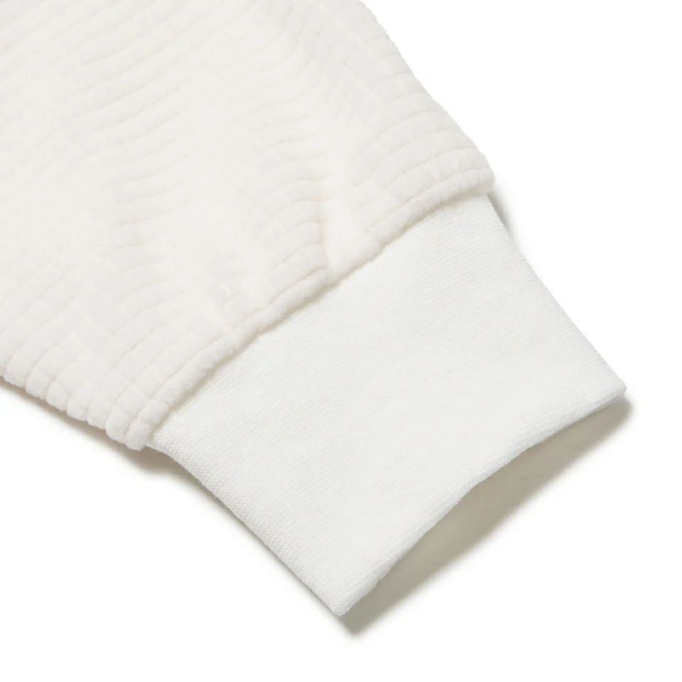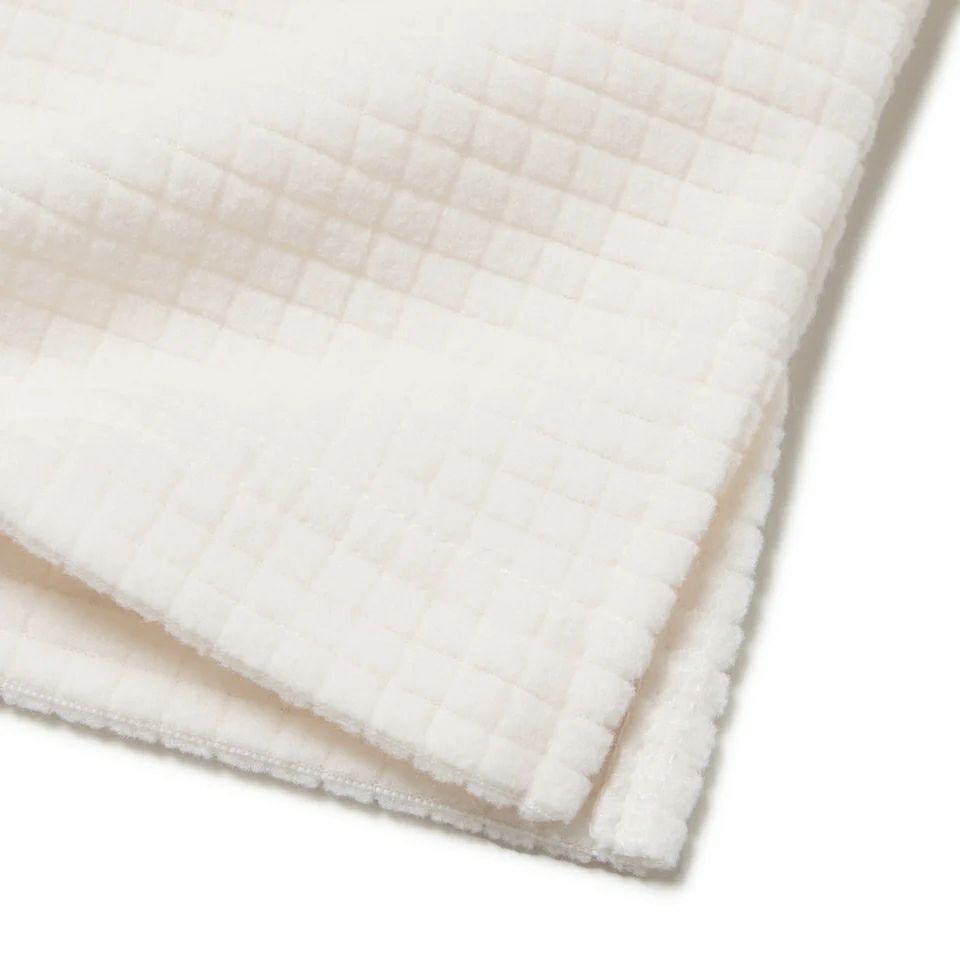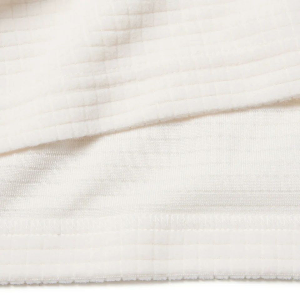 The slightly brushed fleece separated by a grid is lightweight and provides ventilation during layering through gaps in the grid.