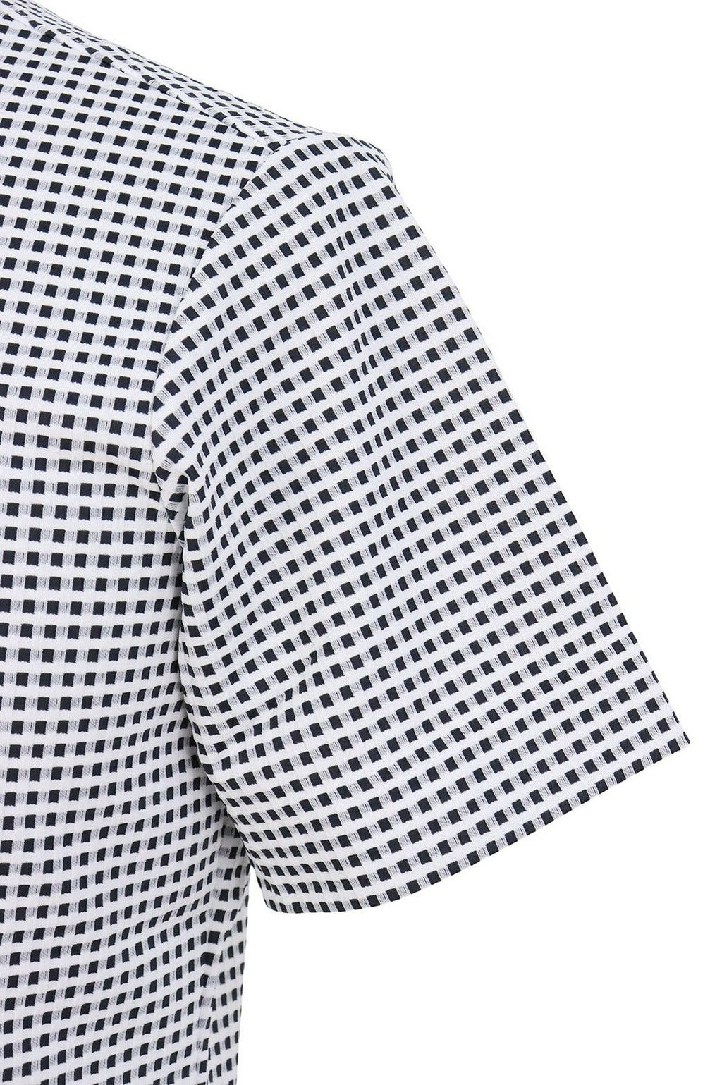 Polo shirt, short sleeve, UV protection, stand collar shirt, wide collar, gingham check pattern, all-over pattern, logo embroidery