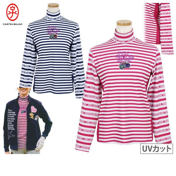High neck shirt, long sleeves, UV protection, mock neck, logo border pattern, camper van print, golf wear
