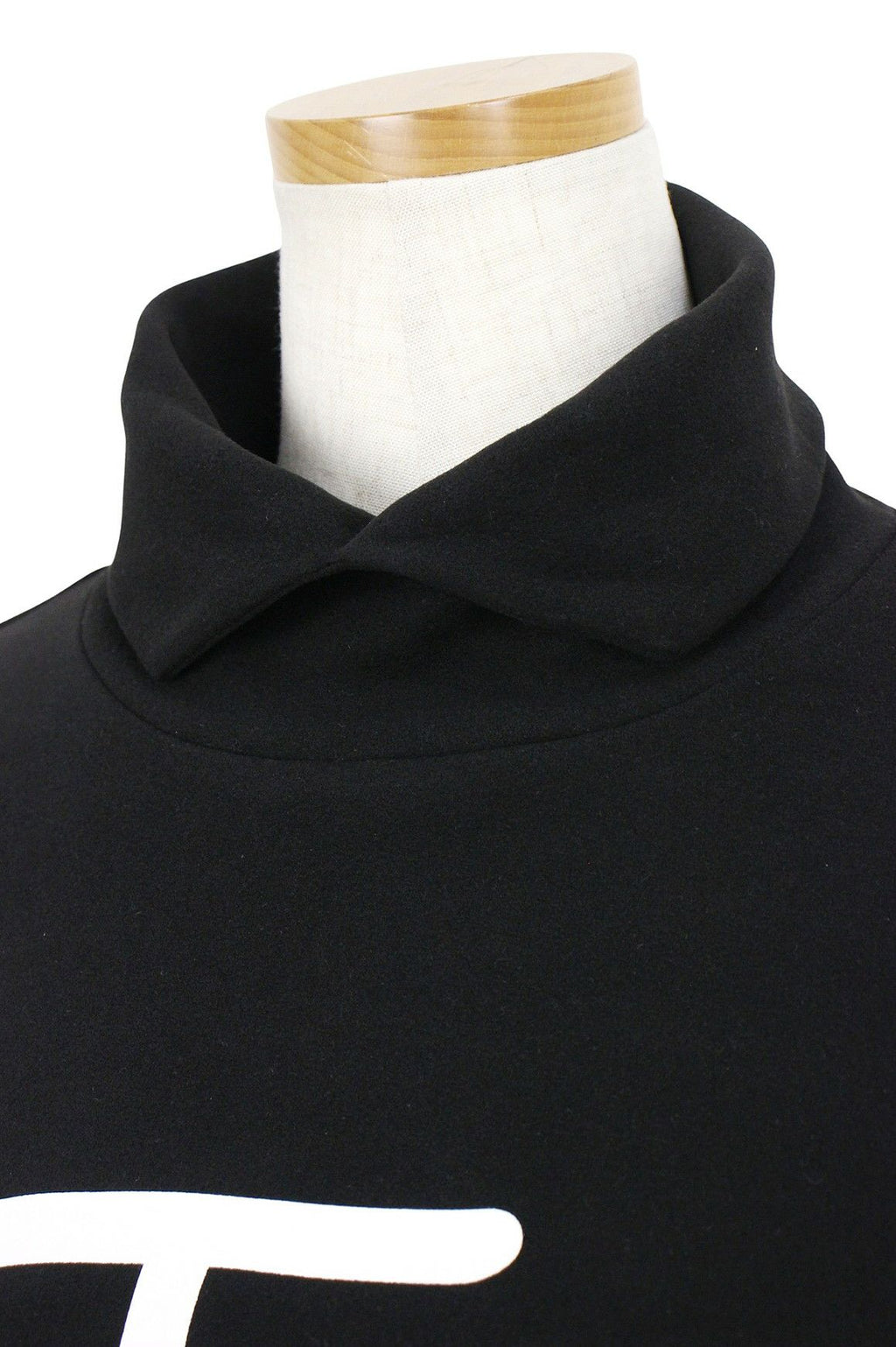 High neck shirt, long sleeve, deformed collar pullover, mock neck shirt, fleece, slightly brushed material, heat retention, cold protection, logo print, golf wear
