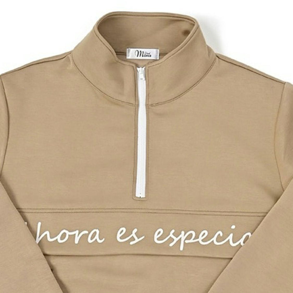 Sweatshirt half zip pullover High neck cardboard knit material silicone patch message print
