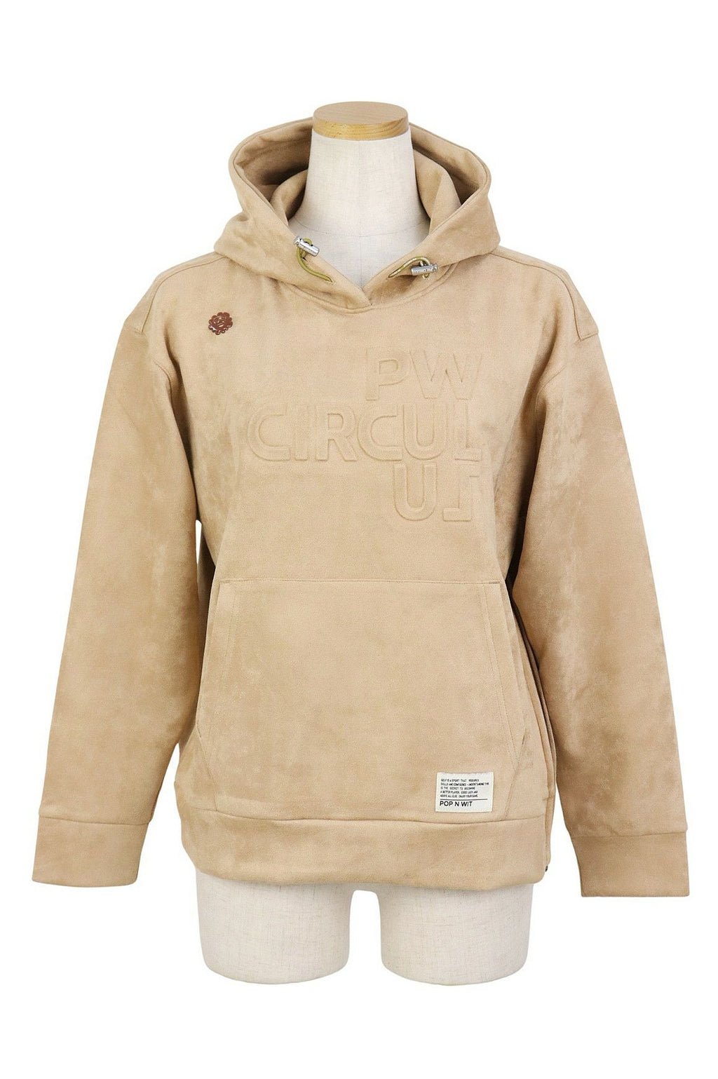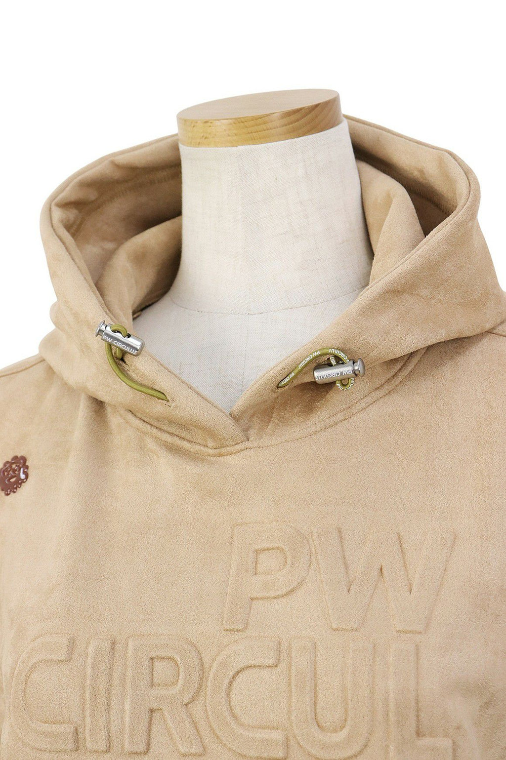 Parka, long sleeves, hooded sweatshirt, removable self-fabric neck warmer included, suede touch, cardboard jersey material, embossed logo design, 2WAY logo print, golf wear