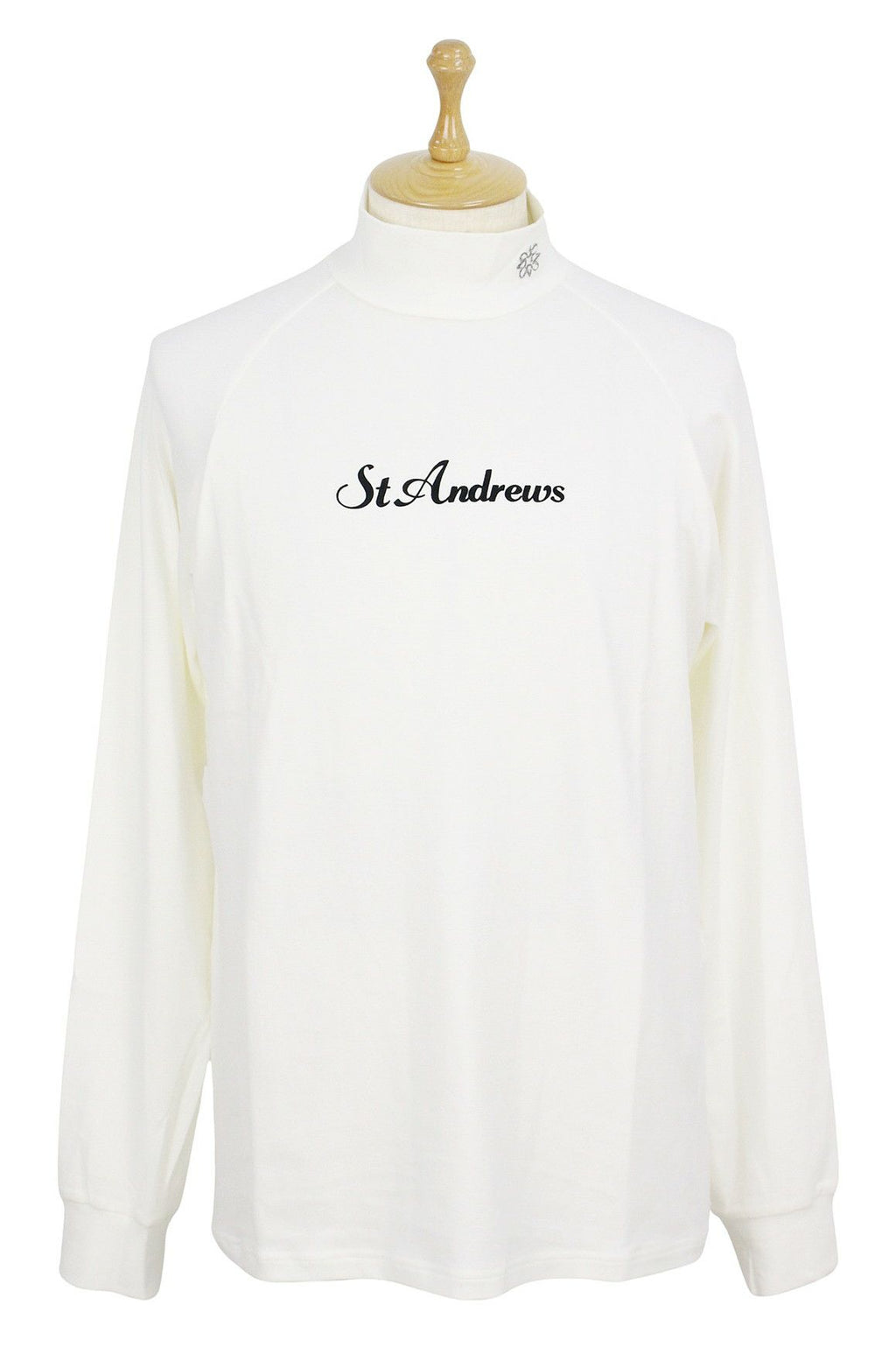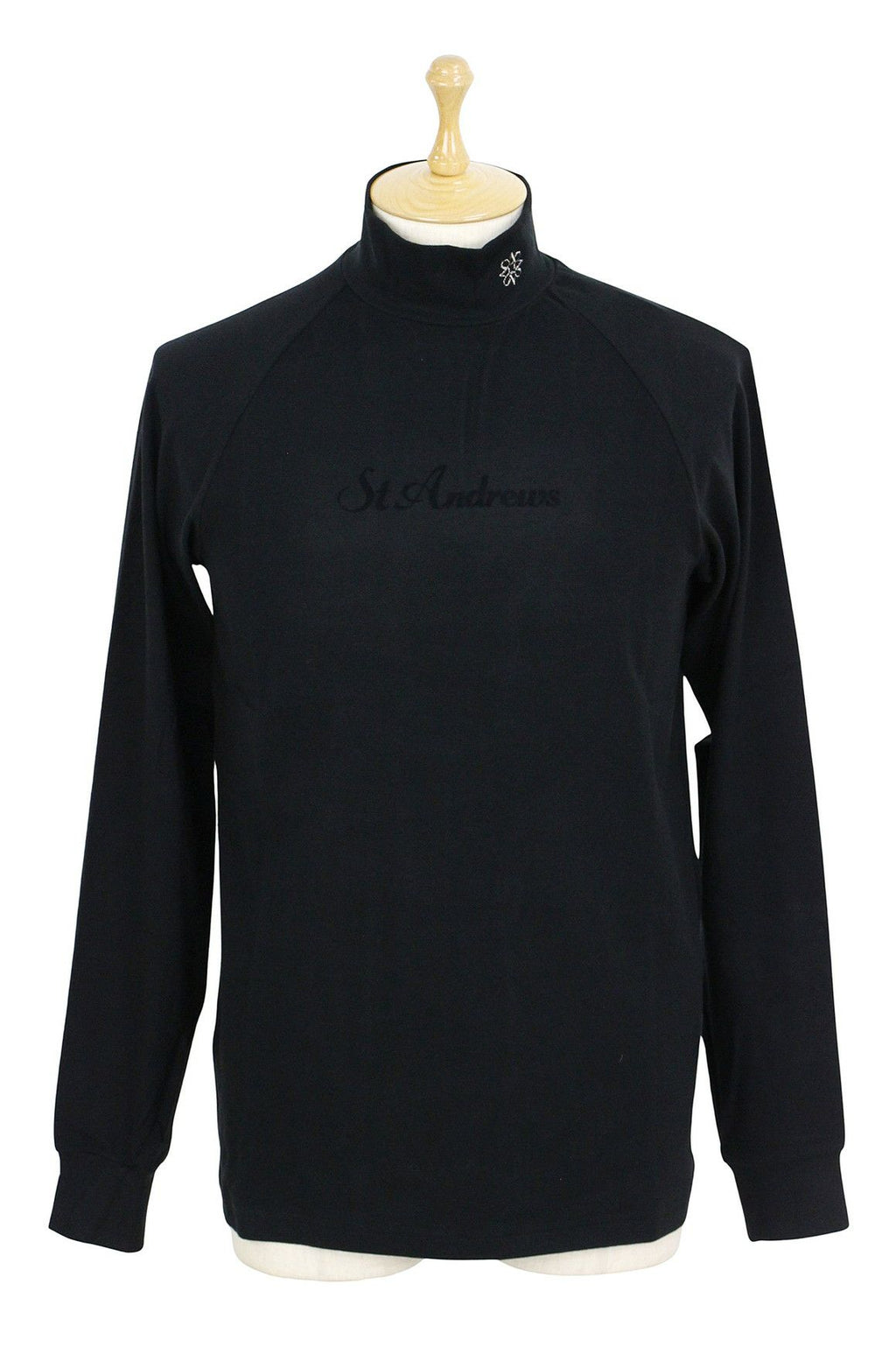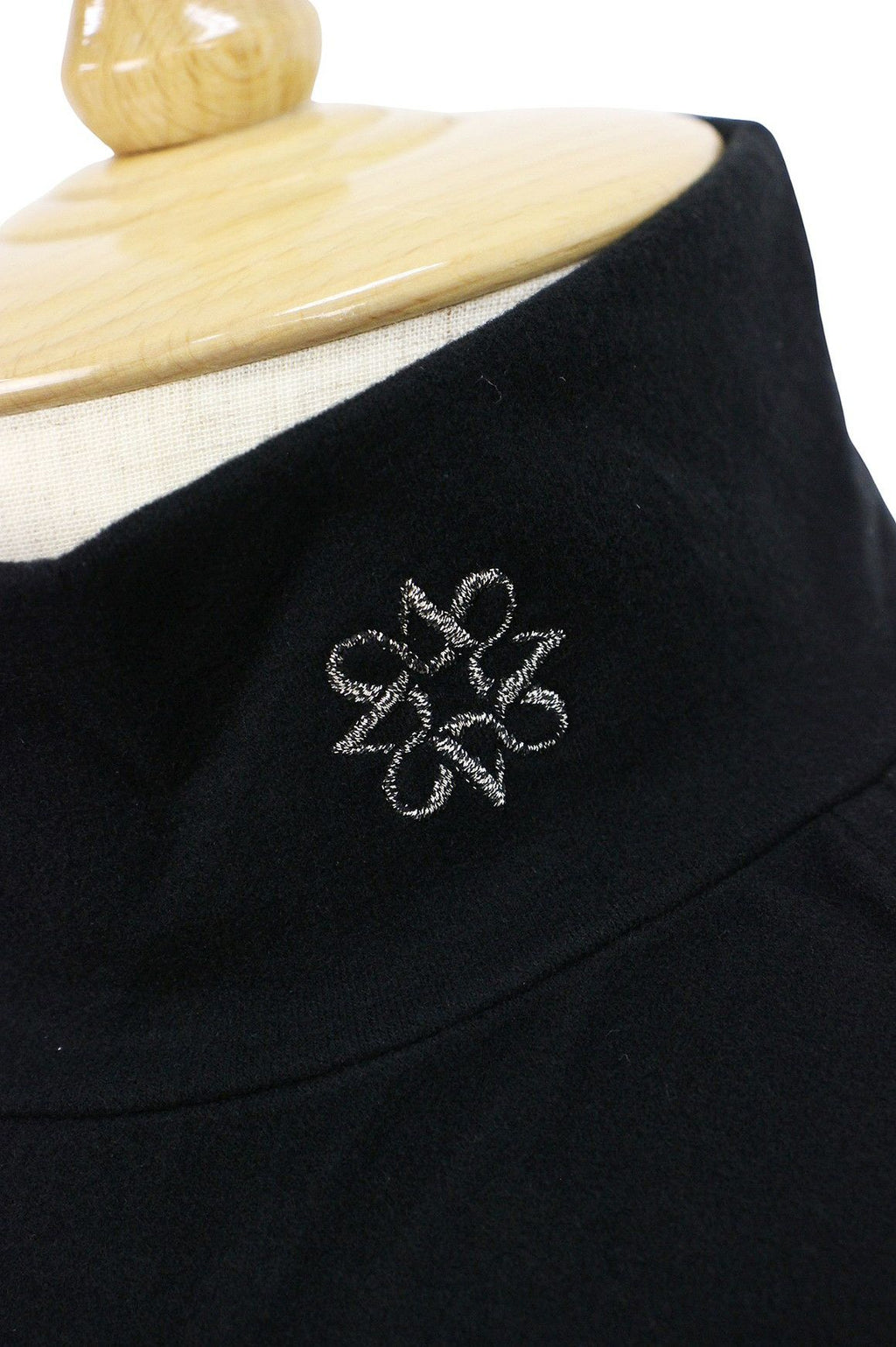 High neck shirt, long sleeves, brushed feel, moisture absorption and heat generation, mock neck, raglan sleeve, flocky logo print, golf wear