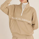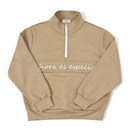 Sweatshirt half zip pullover High neck cardboard knit material silicone patch message print