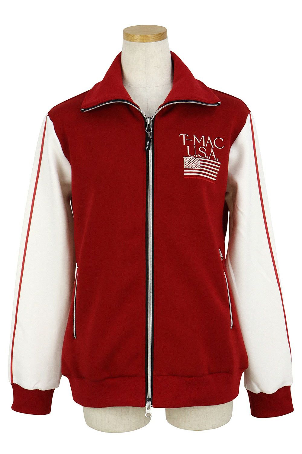 Blouson, track jacket, stand neck, stretch, sleeve color scheme design, back embroidery design, star and stripe motif, sleeve line design, sweat jacket, jersey outerwear, TOPS