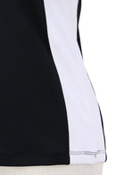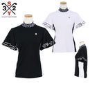 High neck shirt, short sleeve, mock neck shirt, flared sleeve, stretch, side color scheme, all-over pattern details, golf wear