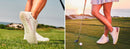 中心からつま先にかけて柔軟なPUにすることでスィング時の足の動きに沿って屈曲。