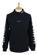 ハイネックシャツ 長袖 モックネックシャツ ストレッチ 両袖ロゴプリント 襟リブデザイン 裏メッシュ素材 ゴルフウェア