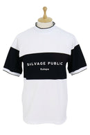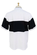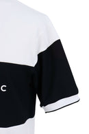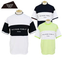 ハイネックシャツ 半袖 モックネックシャツ ストレッチ バイカラー 配色切替デザイン ロゴプリント リブ襟 ゴルフウェア