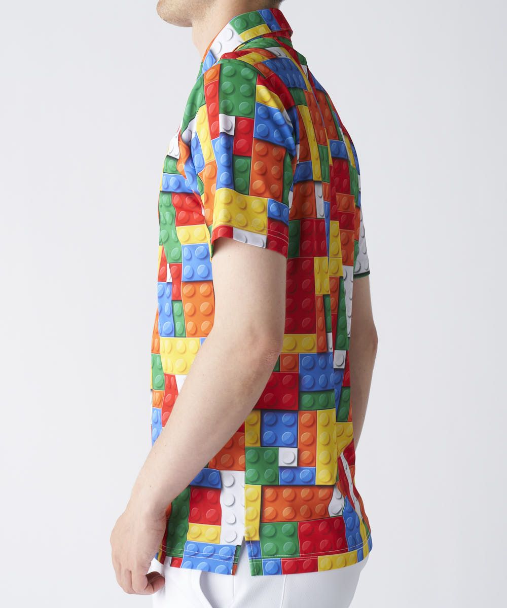 ポロシャツ 半袖 UVカット 鹿の子素材 ブロック柄 カラフルデザイン ロゴ刺繍 M~3Lまでご用意 ゴルフウェア