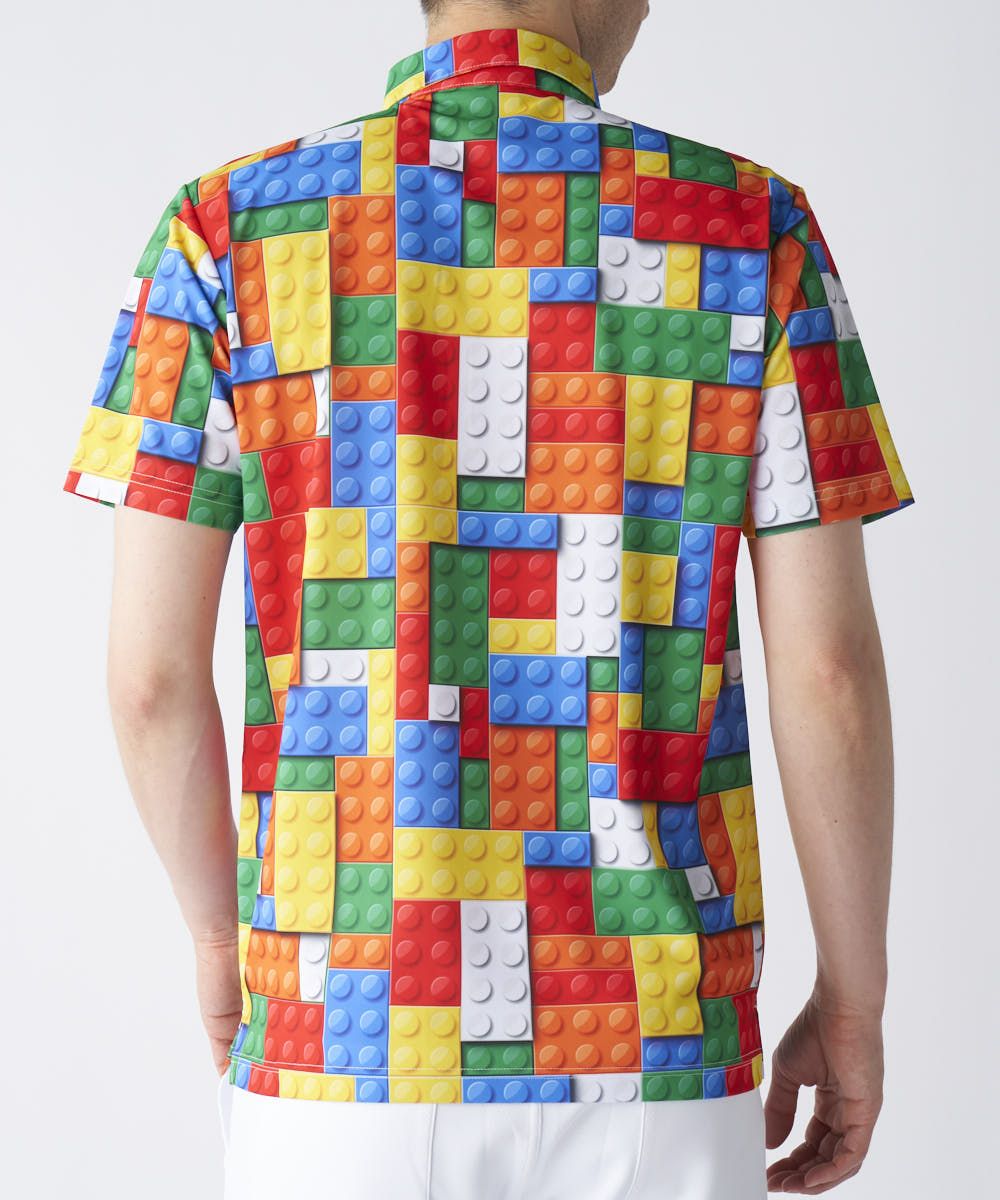 ポロシャツ 半袖 UVカット 鹿の子素材 ブロック柄 カラフルデザイン ロゴ刺繍 M~3Lまでご用意