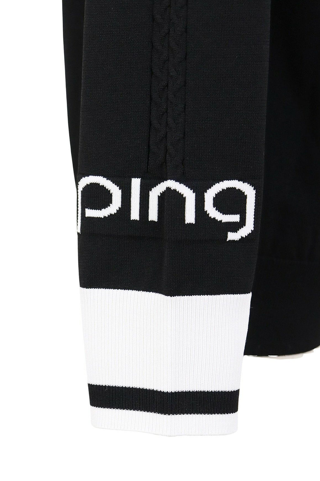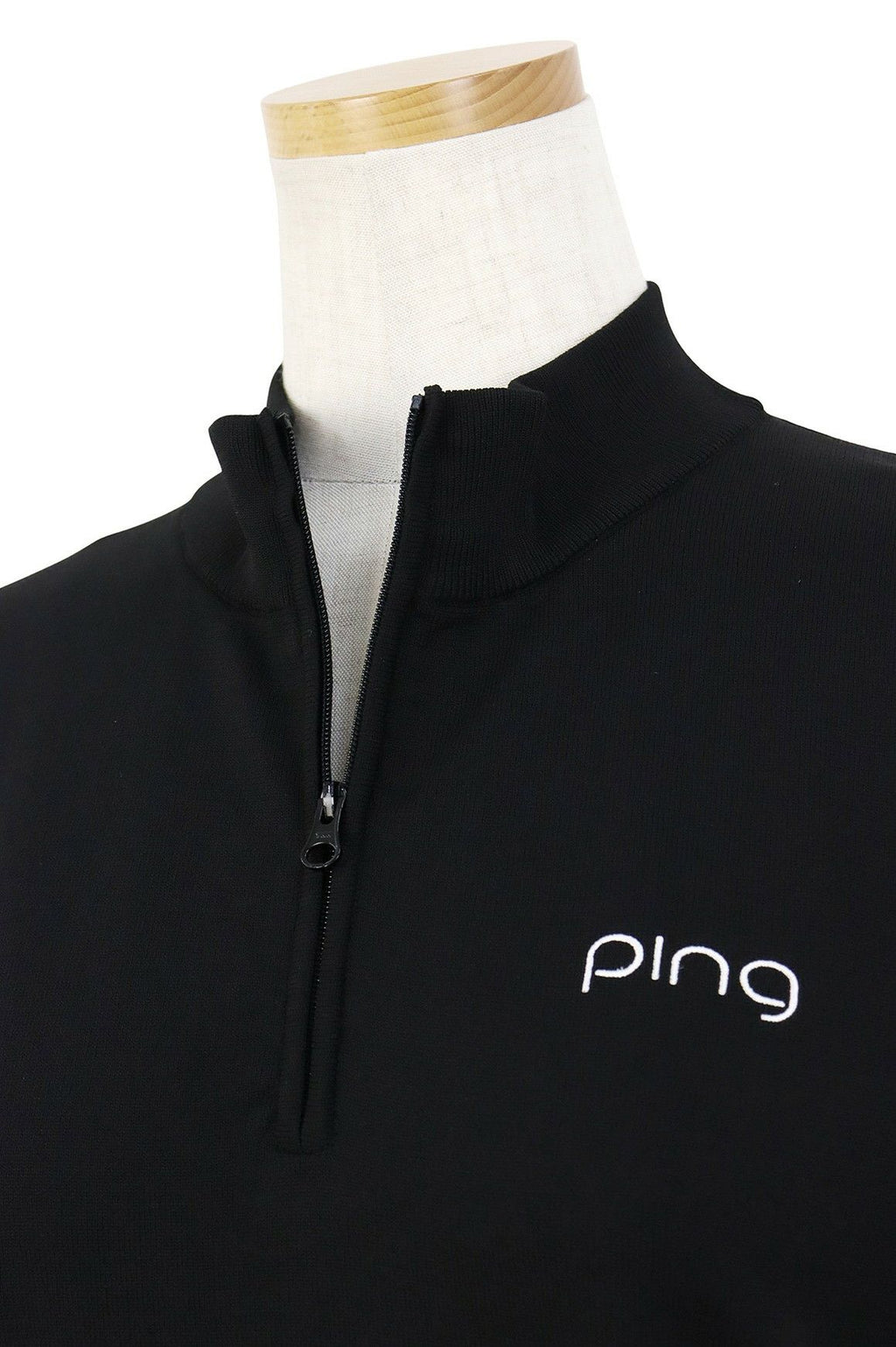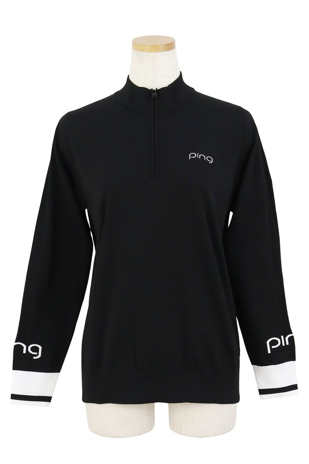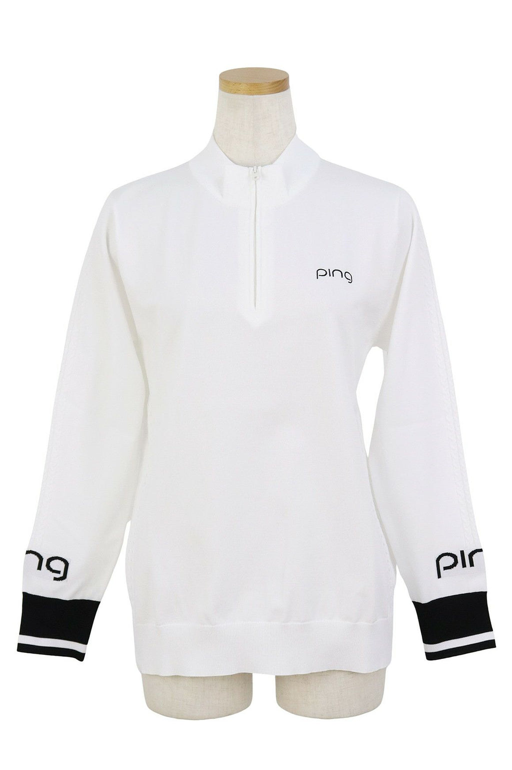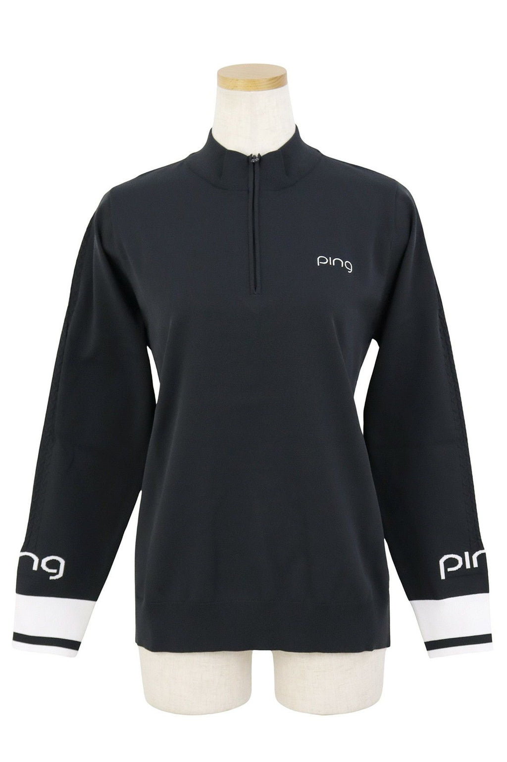 セーター ハーフジップ ハイネックにもなる UVカット 軽量ポリエステルニット ケーブル編みディテール ロゴ刺繍 ロゴジャガード