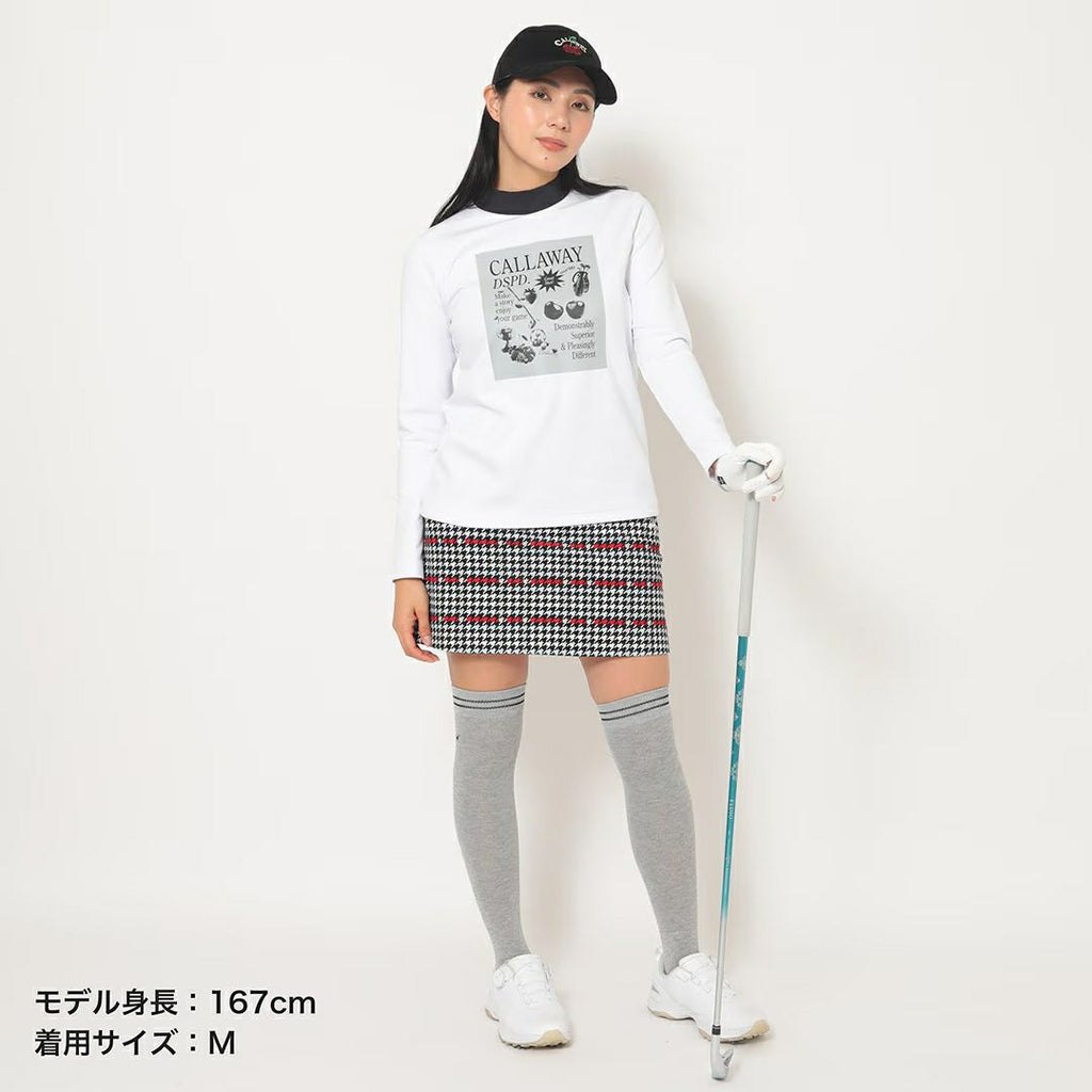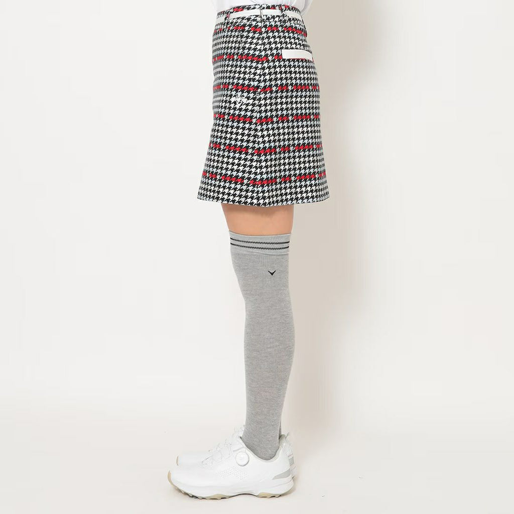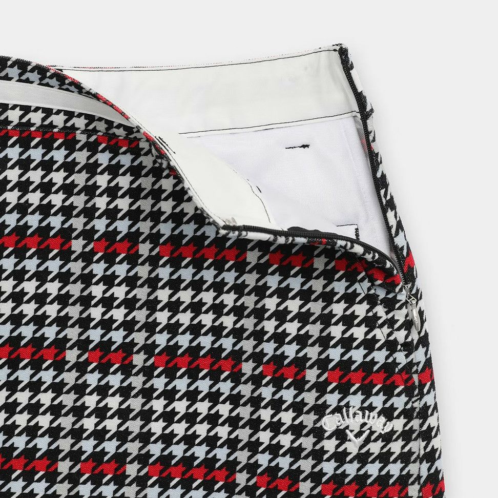 キャロウェイ冬の定番的素材、8WAYストレッチのモールスキン素材に千鳥チェックをマルチカラーでプリントし、レトロクラシックなイメージの大きいチェックを表現しました。トレンド感あるこの冬一押しスカートです。