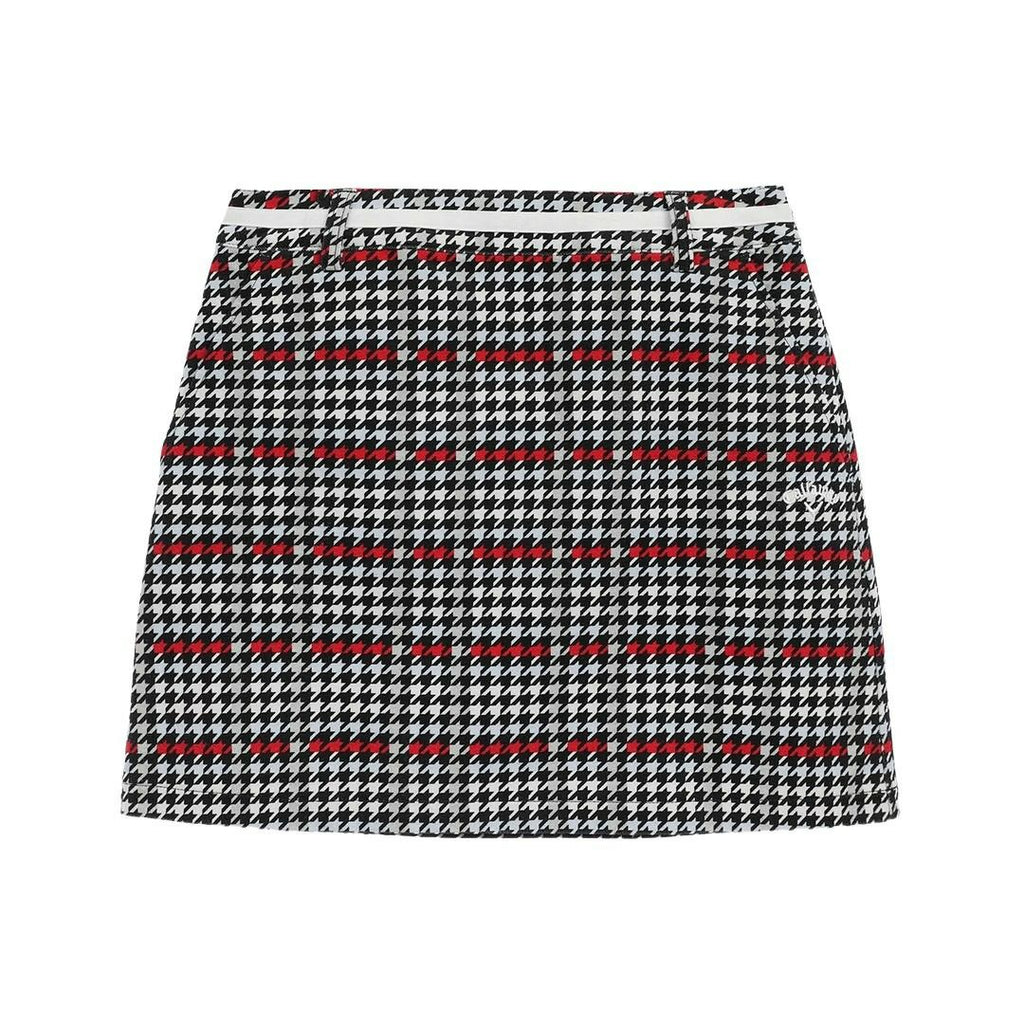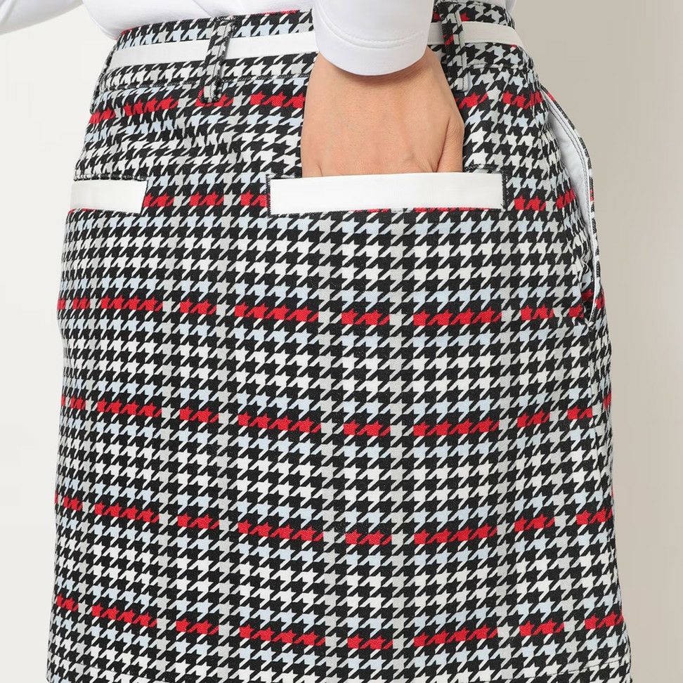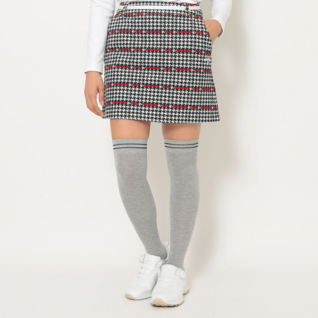 スカート 台形スカート ストレッチ コットン混紡 千鳥チェック柄 総柄 ロゴ刺繍 ゴルフウェア