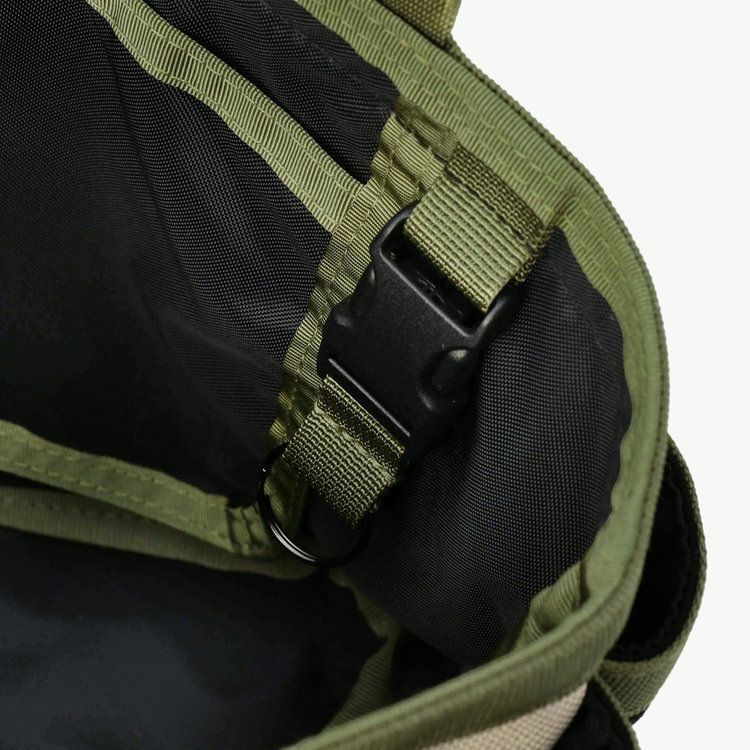 フォレストグリーンのロゴ刺繍とモスグリーンのテープ配置した「森」をイメージした、どこかアメリカンクラシックを思わせるルックスも魅力のアイテムです。