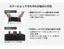 高密度ゴム素材の補助ベルトと3種類の補助ステ―が、背骨や腰回りをガッチリと強力固定。