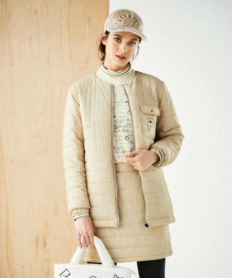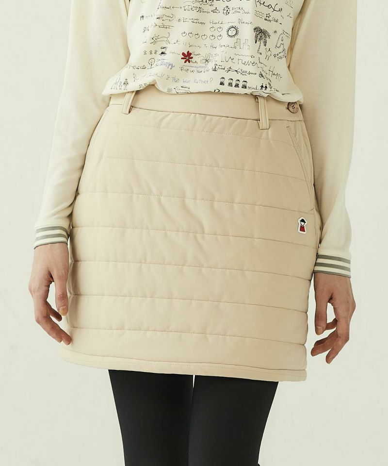 スカート 中綿キルトスカート 蓄熱裏地付 撥水 防風 保温 ピコワッペン付 ロゴ刺繍付 台形シルエット 防寒対策 BOTTOMS