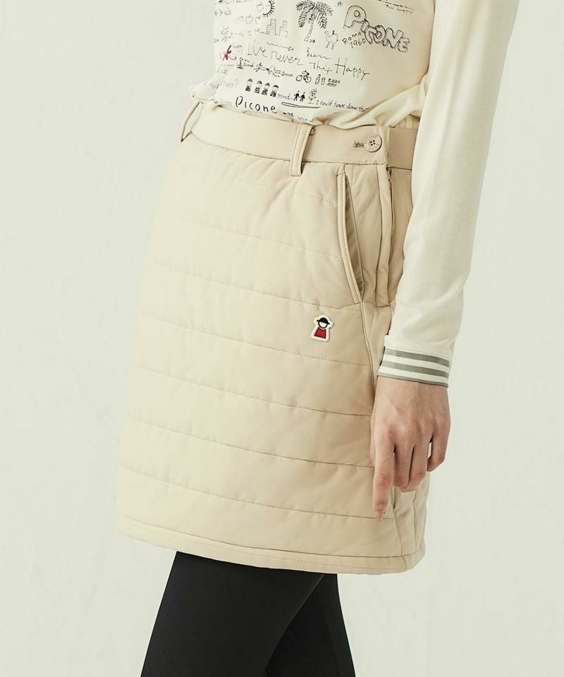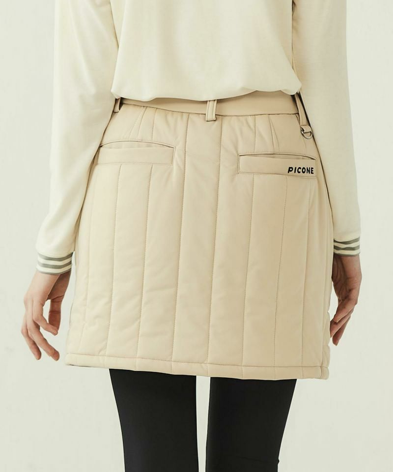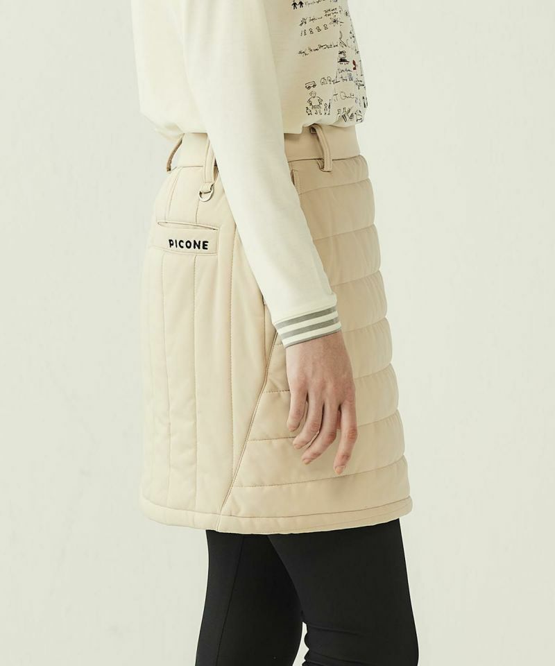 スカート 中綿キルトスカート 蓄熱裏地付 撥水 防風 保温 ピコワッペン付 ロゴ刺繍付 台形シルエット ゴルフウェア