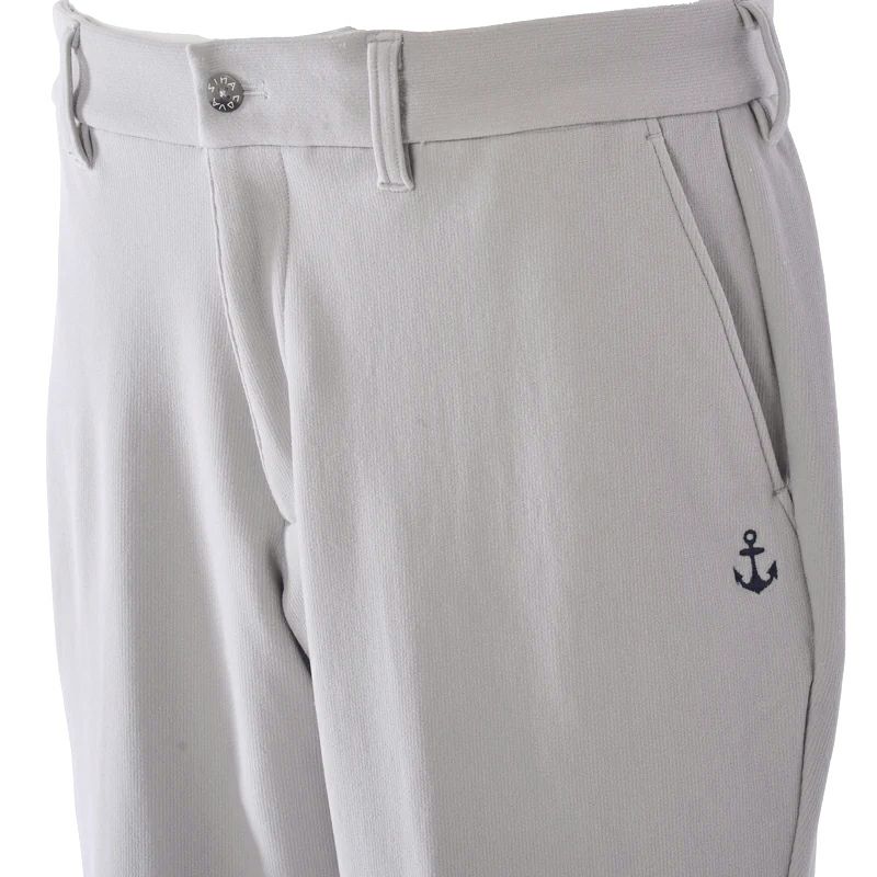 後ろポケットに文字のロゴ、前足にはイカリの刺繍をデザインしたノータックパンツです。